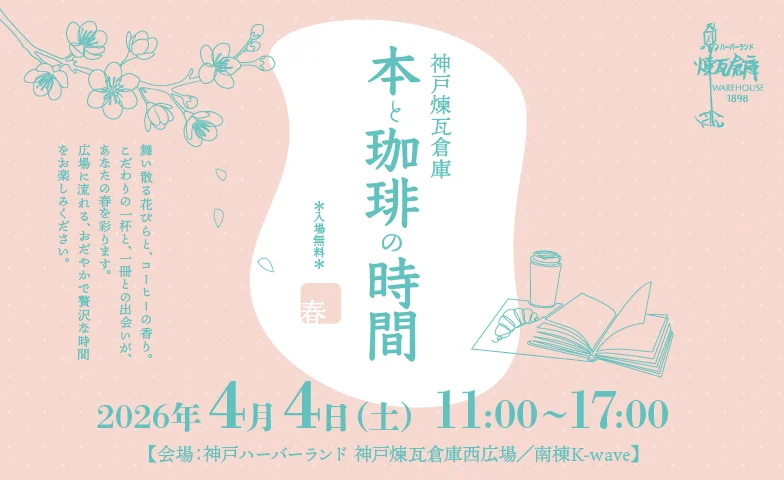 神戸煉瓦倉庫西広場、南棟K-waveで「本と珈琲の時間」が4月4日(土)に開催予定です。
