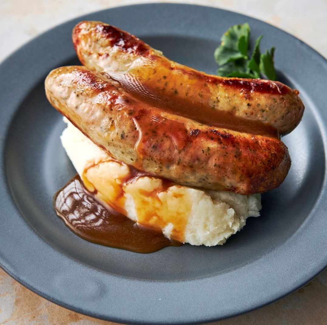 西ヨークシャーの温泉街イルクリーにある「全英ブッチャーショップ・オブ・ザ・イヤー2025」で優勝したブッチャーショップ。ジュワッと広がる肉汁とパリパリの皮がクセになるソーセージは「イングリッシュブレックファースト」に欠かせない一品です。