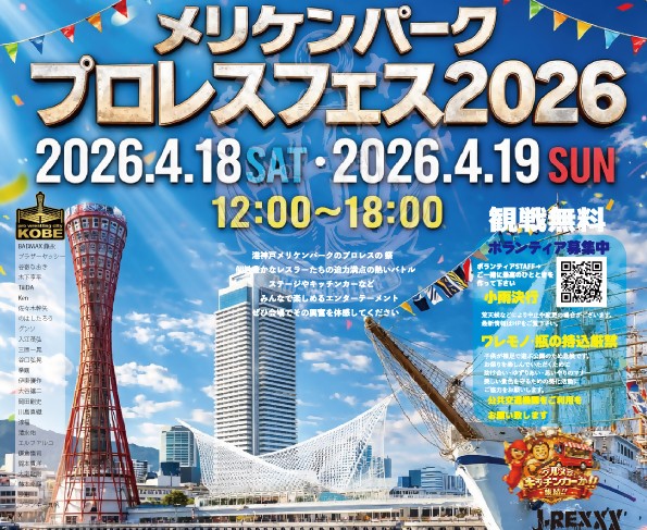 神戸メリケンパークで「メリケンパークプロレスフェス2026」が4月18日(土)、19日(日)に開催されます。
