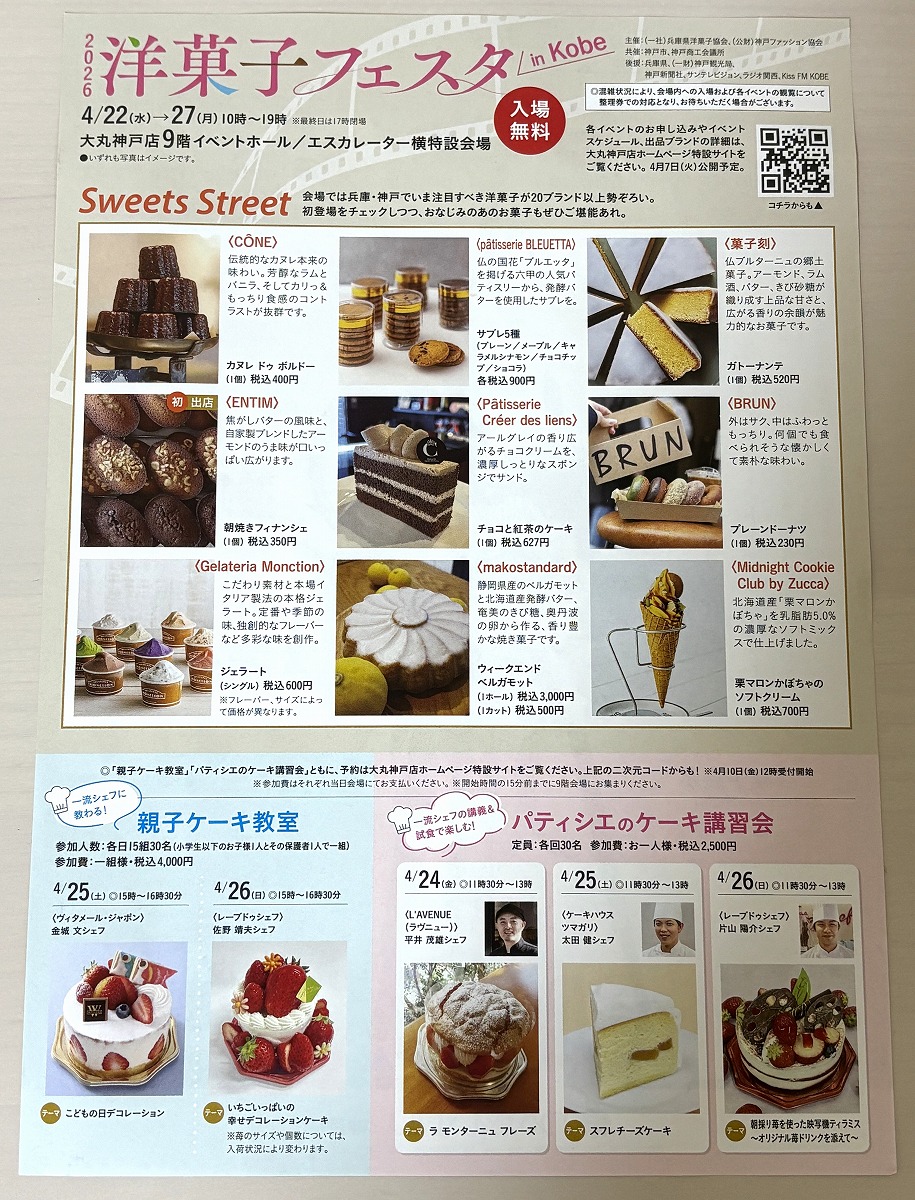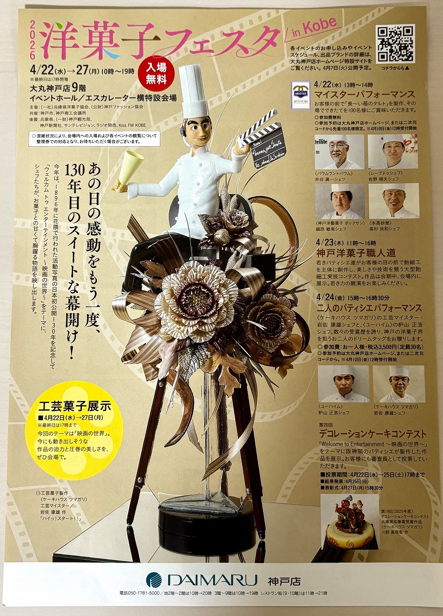 兵庫・神戸で愛される洋菓子の味からパティシェパフォーマンスまで楽しめる「2026洋菓子フェスタ in Kobe」が大丸神戸店さんで4月22日(水)~27日(月)に開催されます。