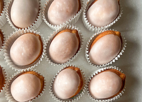 広島の檸檬農園「中吉屋」の国産檸檬を使い、檸檬皮、檸檬果汁をたっぷりと加えて焼いています。表面の糖衣には檸檬果汁とジンを合わせて、檸檬の爽やかさをより引き立てるように仕上げました。