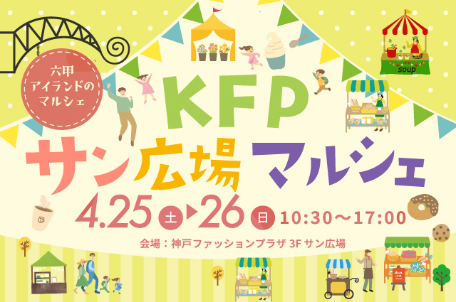 神戸ファッションプラザで「KFPサン広場マルシェ」が2026年4月25日(土)・26日(日)に開催!2日間でフードやハンドメイド、ワークショップ、占い、マッサージ等の体験ブース、 その他様々なジャンルのお店が出店されるよ♪ #イベント #東灘区