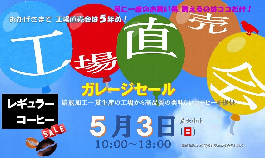 2026年5月「ガレージセール 工場直売会」の開催!