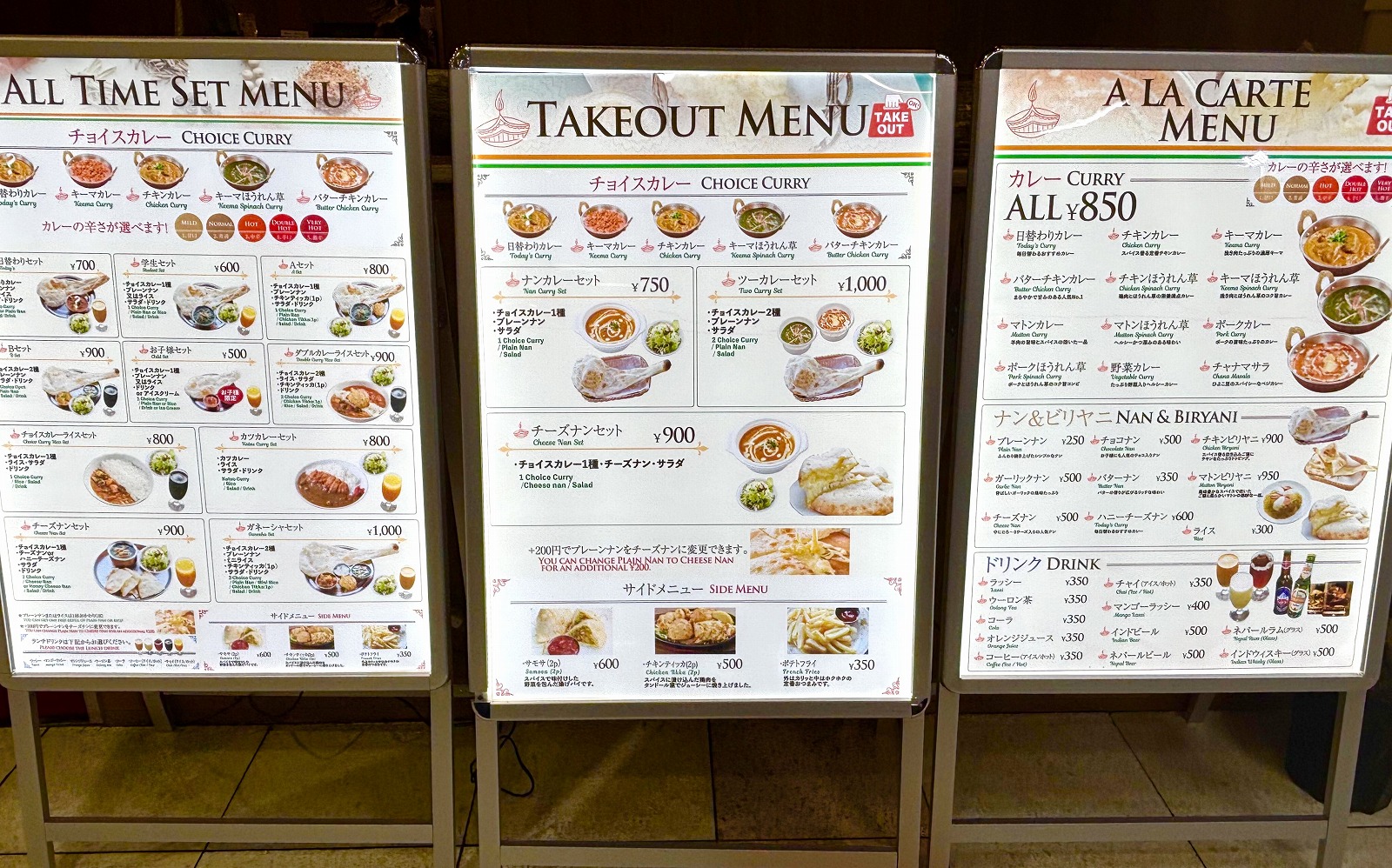 メニューの詳細がこちら。左のセットメニューがかなりお得で、カレーの辛さも選べるそうですよ。このたびは情報とお写真をありがとうございました。ぜひお立ち寄り頂けたらと思います。