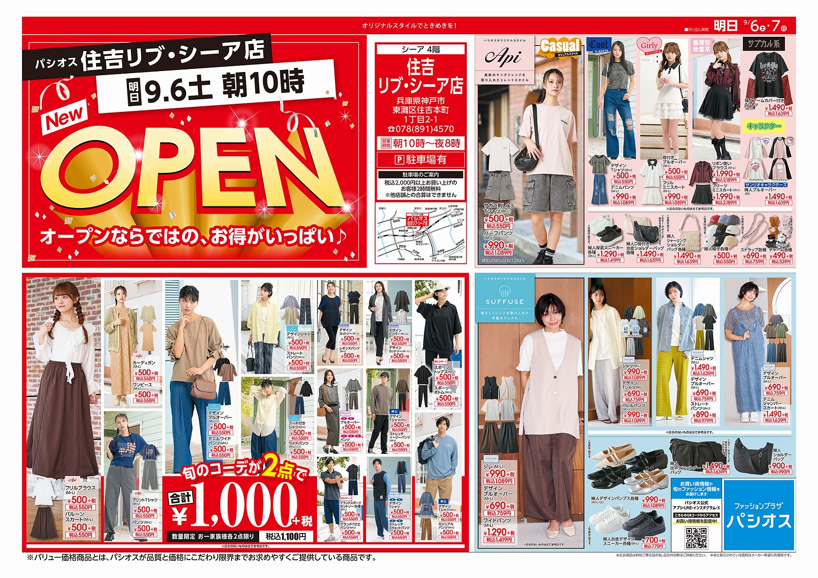 【神戸に初出店!】JR住吉駅すぐのLiv4階に、衣料品や服飾雑貨を扱うファッションプラザ「パシオス 住吉リブ・シーア店」さんがいよいよ9月6日(土)朝10時にオープン!オープンならではのお得な商品も満載♪ #新規オープン #新店情報 #開店情報 #東灘区 #リブ #パシオス