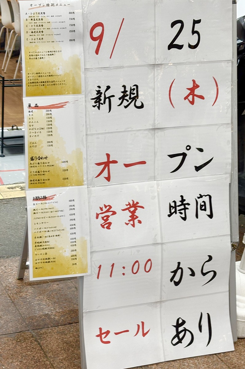 9月25日オープン後のお店の様子がこちら。店内では定食や天丼がイートインできる模様です。