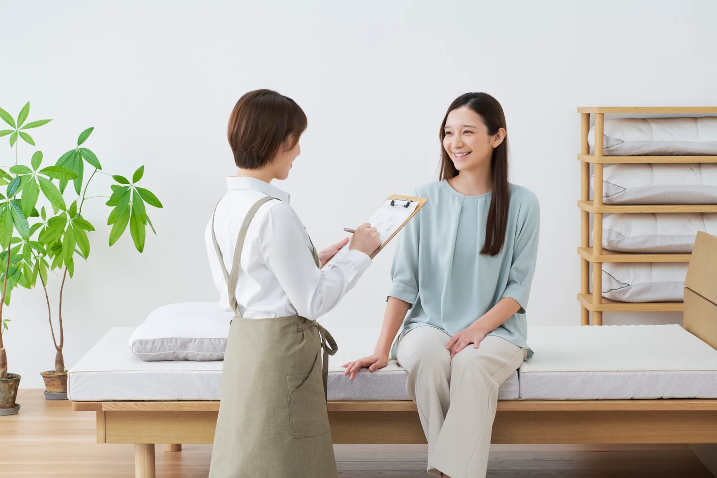 ピロースタンドで取り扱う「nishikawaのオーダーまくら」は、眠りのプロフェッショナルである専門スタッフがカウンセリング・計測し、一人ひとりの頭や首の形、寝姿勢に合わせた最適なまくらを提案します。オリジナル測定器で測定、高さやフィット感を細かく調整し、その場でオーダーメイドまくらを作成、当日お持ち帰りいただけます。購入後も、高さ調整などの定期的なメンテナンスに対応し、長く快適に使用できるサポートを行います。