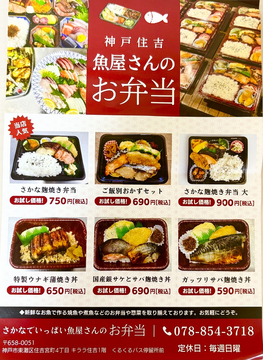 東灘・KiLaLa住吉1Fに「さかなでいっぱい 魚屋さんのお弁当」さんが登場!帰り道やバスの待ち時間に、魚たっぷりのお弁当をぜひどうぞ♪ #東灘区 #さかなでいっぱい #テイクアウト