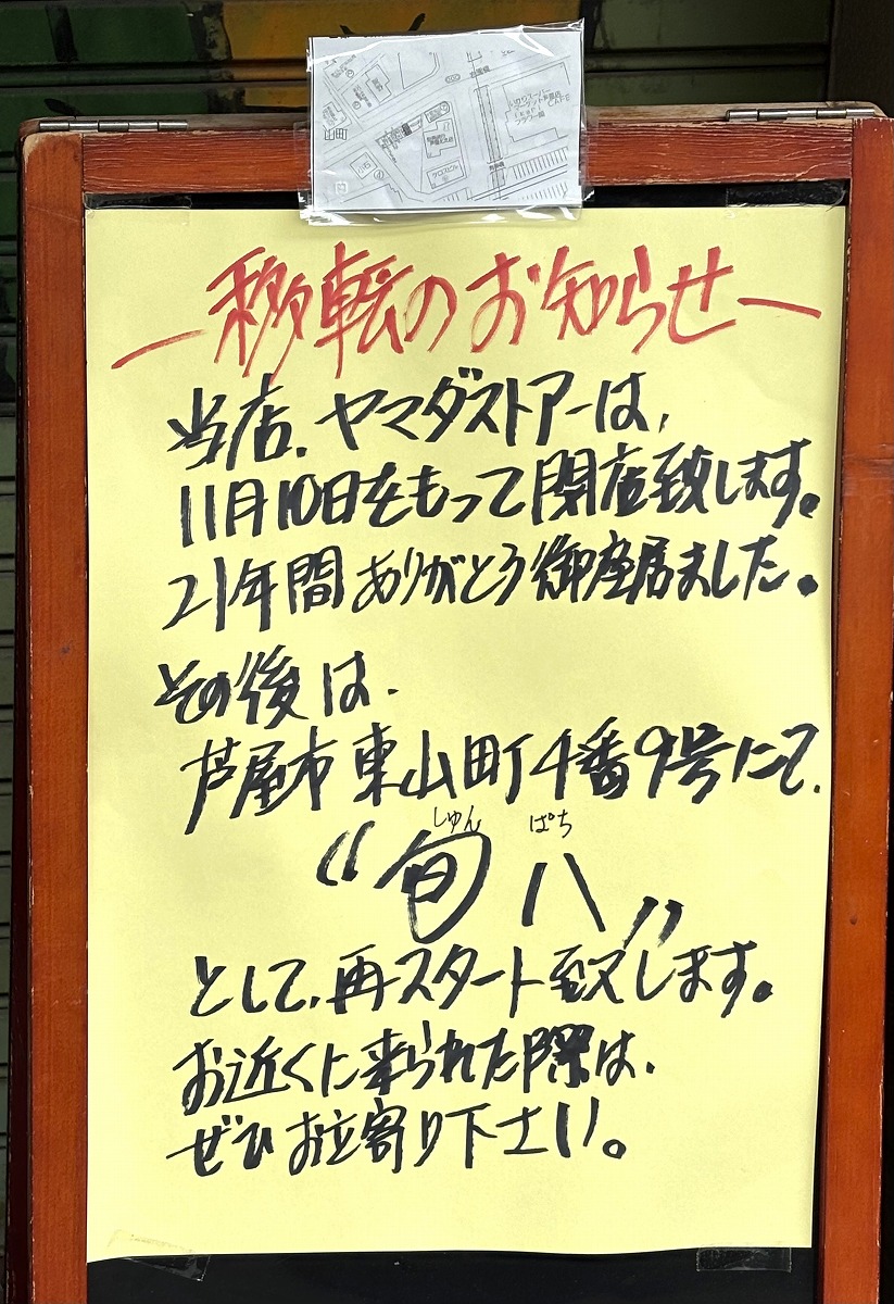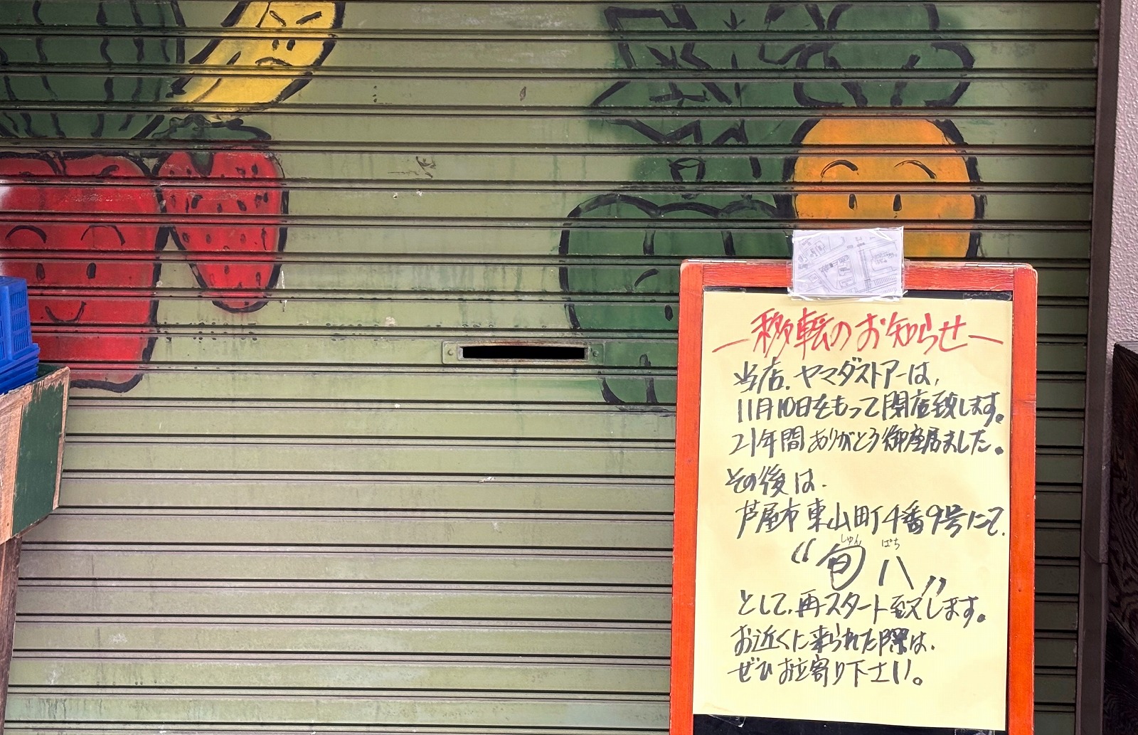 阪神魚崎駅の北側にあった八百屋の「ヤマダストアー」さんが11月10日に閉店へ。芦屋で「旬八」さんとして移転オープンされるみたい #東灘区 #閉店情報 #移転オープン