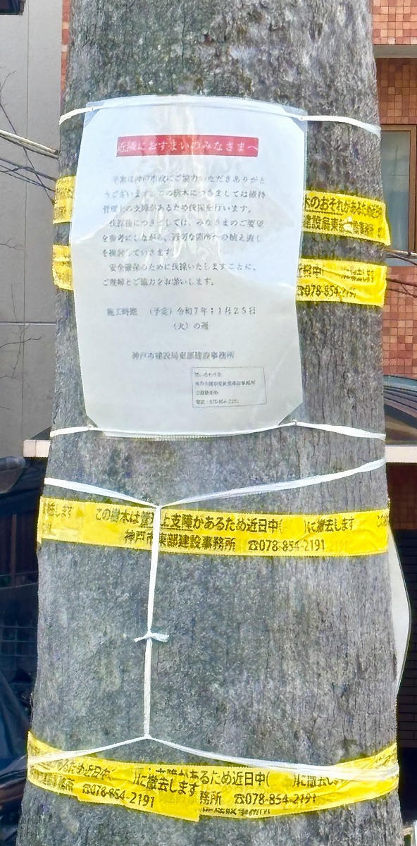 東灘・山手幹線沿いにある「本山街園 バラ園」のヤシの木が伐採されるみたいですよ、と複数の読者様より情報とお写真をお寄せ頂きました。