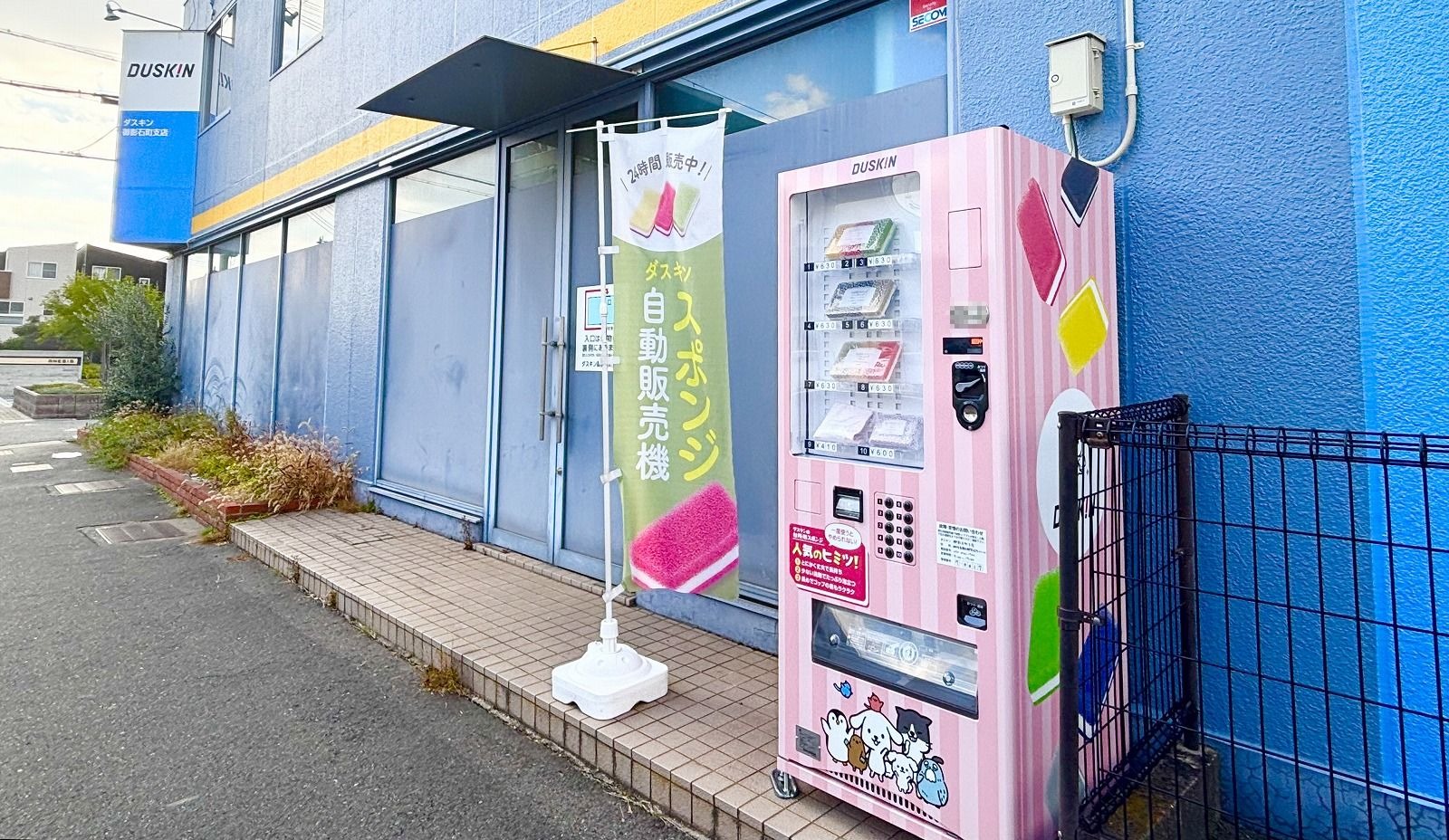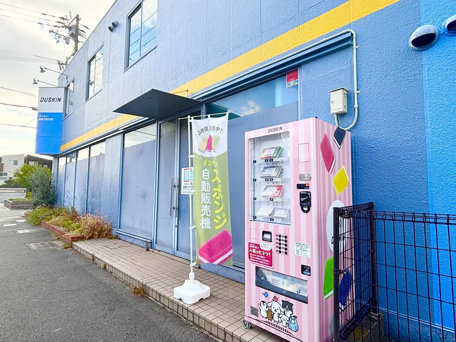 「ダスキン 御影石町支店」さんの建物横に設置されている「スポンジの自動販売機」がこちら。