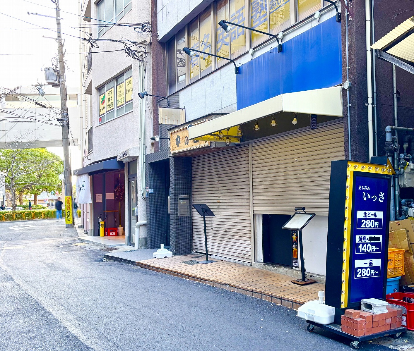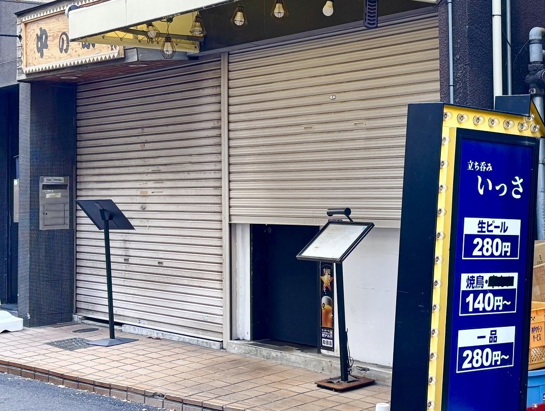 JR住吉駅から南へ徒歩すぐの場所にある「立ち呑み いっさ 焼鳥処 住吉本店」さん。営業時間は午後17:00〜23:00 と夜の時間帯がメインのお店です。