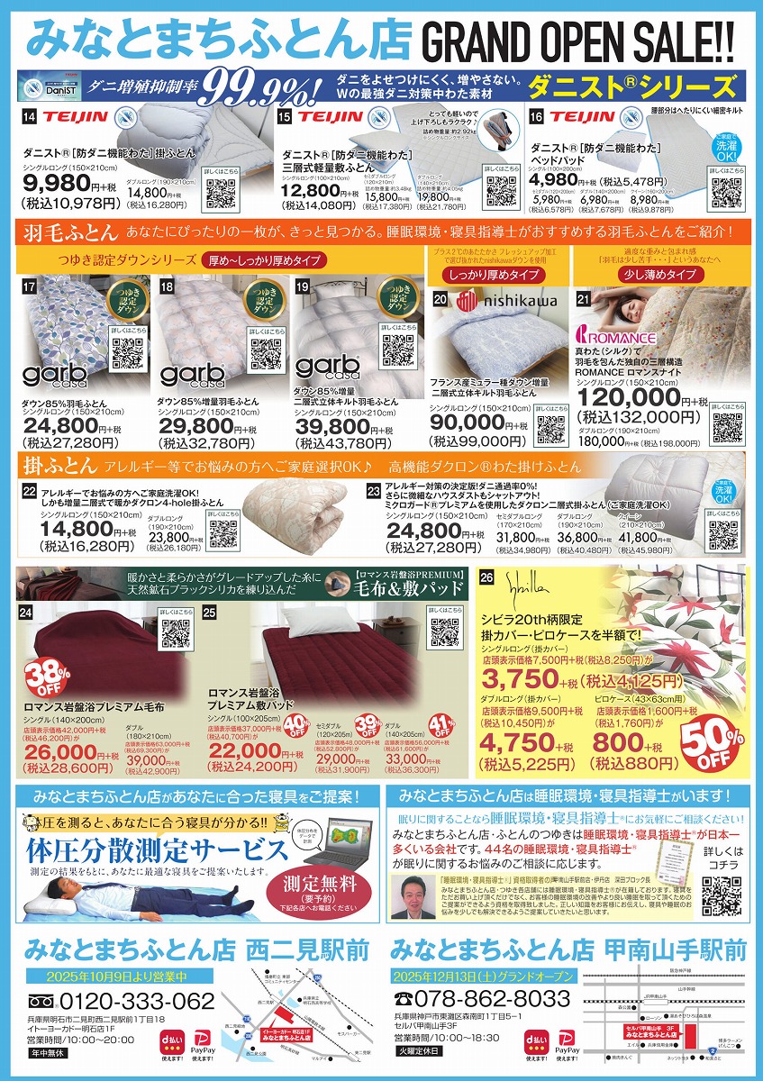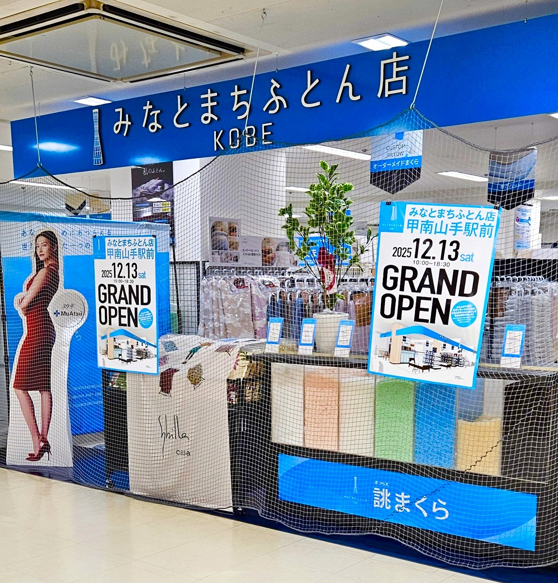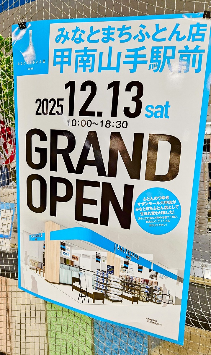このたびはご案内をありがとうございました。「みなとまちふとん店 甲南山手駅前店」さんの2025年12月13日(土)グランドオープンをどうぞお楽しみに♪