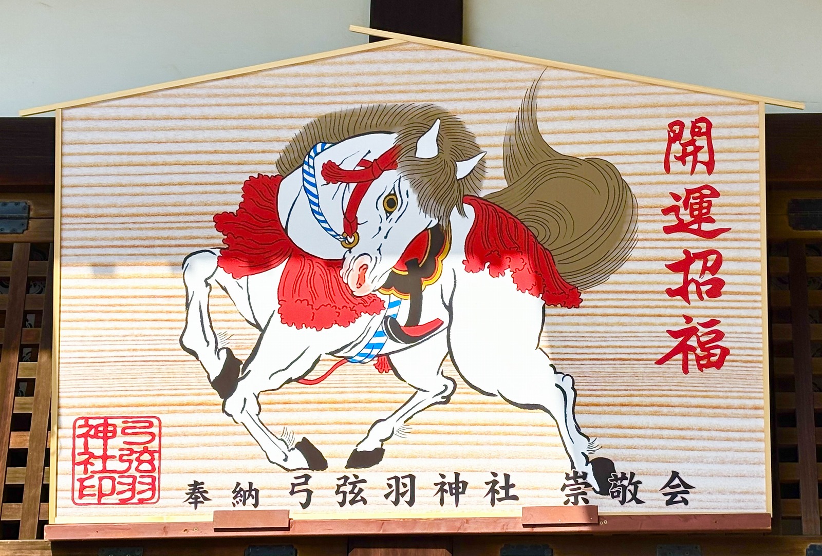 弓弦羽神社の「開運招福」絵馬がこちら。午年の力強さと勢いが表現されています。