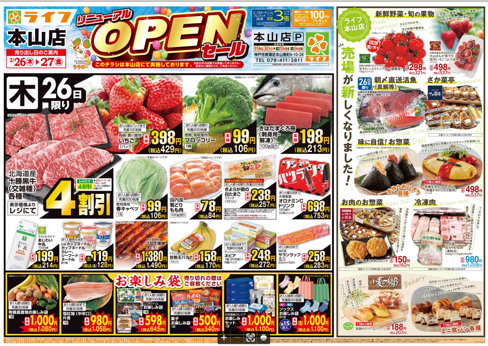 2026年2月26日~27日 本山店オープンセールのチラシがこちら