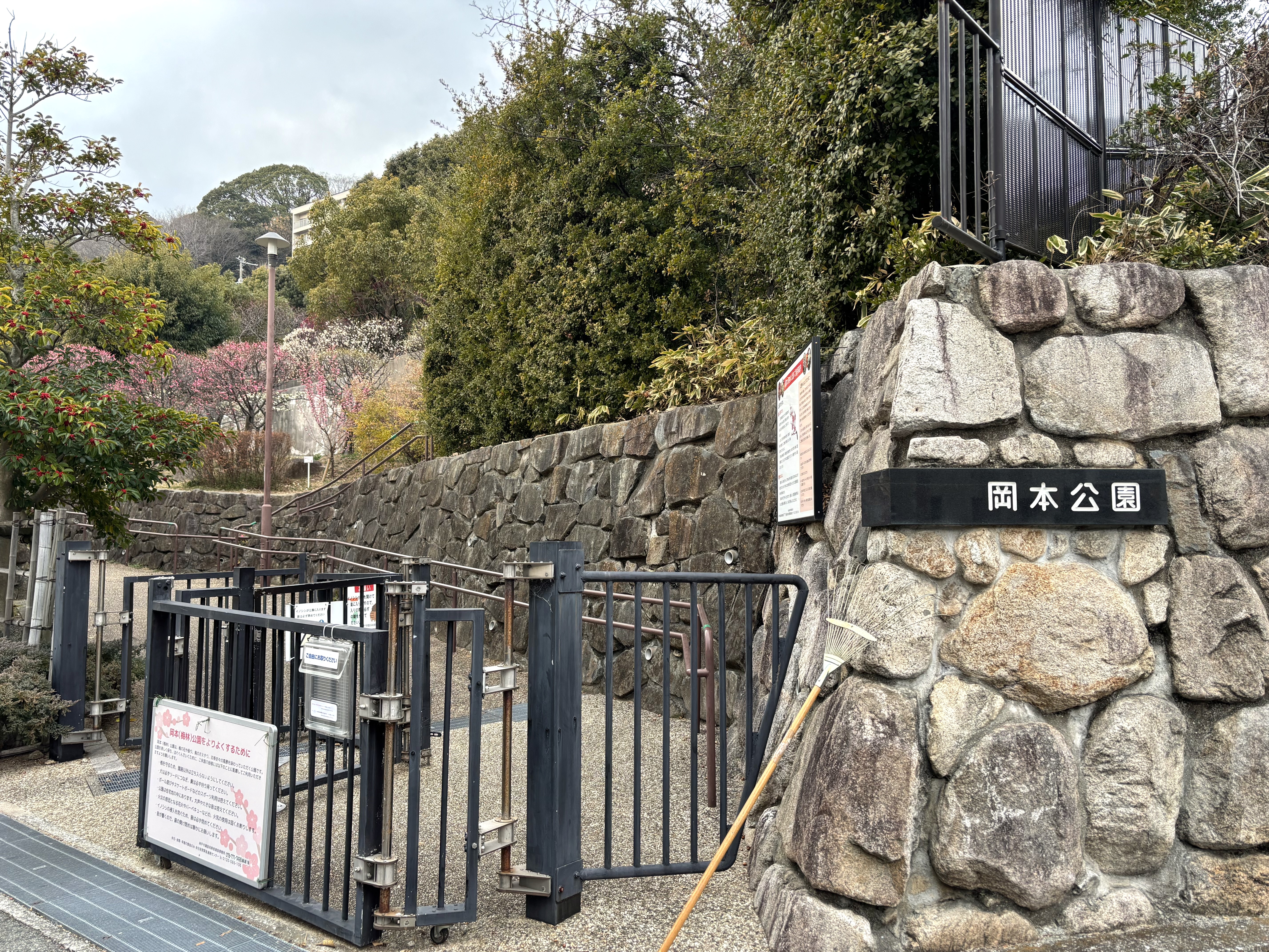 阪急岡本駅から北西へ徒歩約10分、「岡本梅林公園」がこちら。すぐ近くには、岡本八幡神社があります。