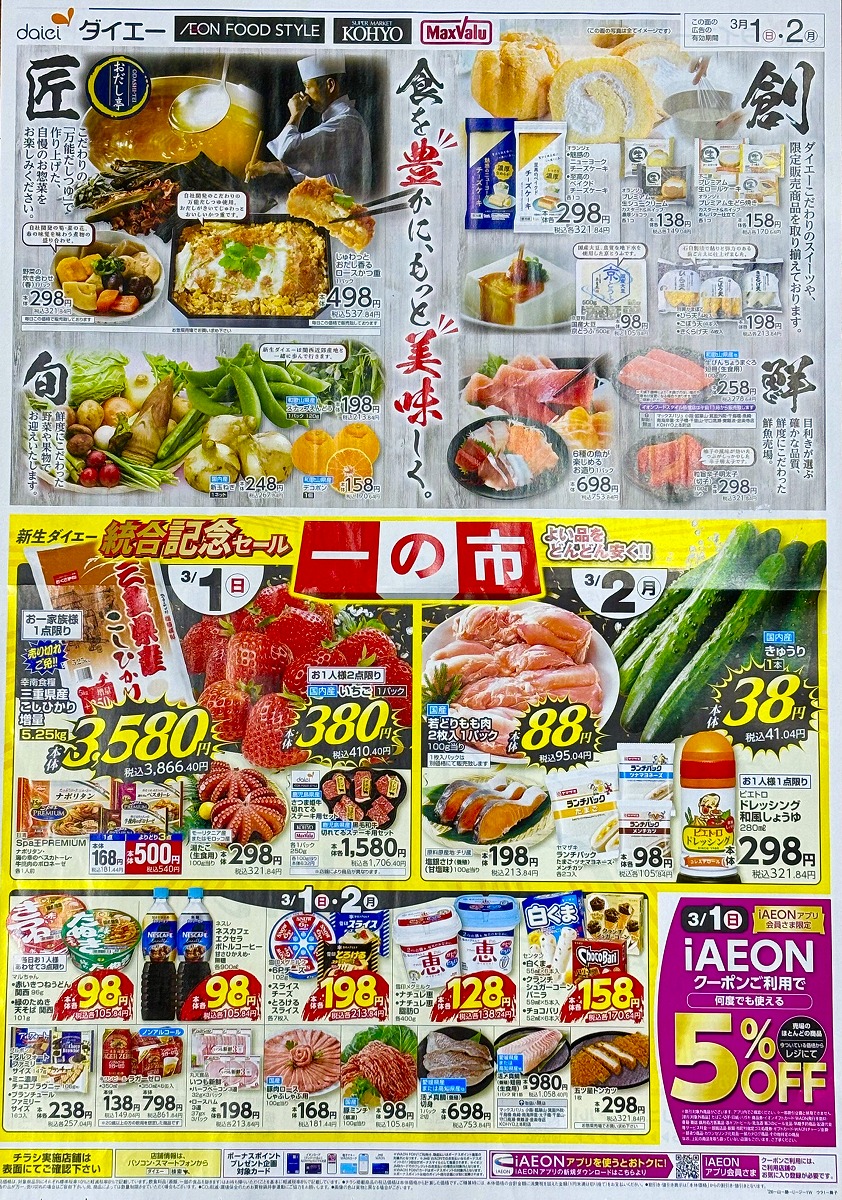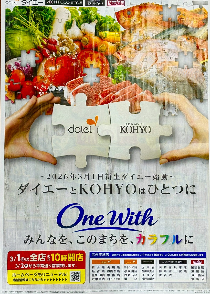 ダイエーと光洋(KOHYO)が経営統合し、『新生・ダイエー』として2026年3月1日から新たにスタ ート!お得な統合記念セールは3月31日まで1か月継続して実施されるよ! #新生ダイエー #フードスタイル #統合記念セール