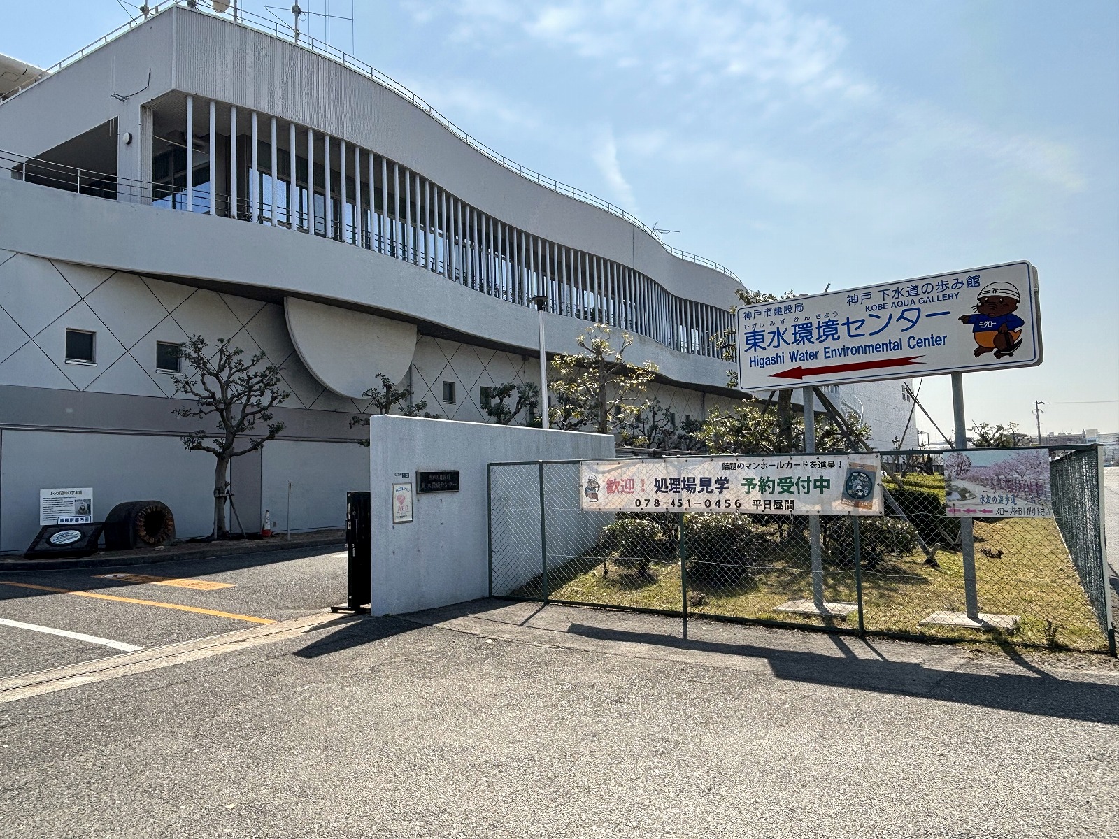阪神青木駅、もしくは阪神魚崎駅から南へ徒歩約15分、瀬戸公園の南側にある「神戸市建設局 東水環境センター」がこちら。