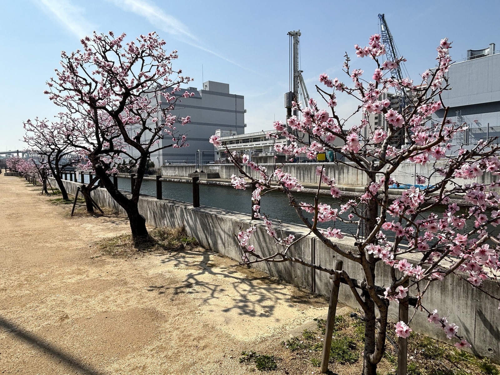 東灘・魚崎にある水辺の遊歩道・うおざきにある「アーモンド並木」で、2026年も歩いてお花見を楽しんでみた♪ #東灘区 #お花見 #アーモンドの花 #東水環境センター #街散策 #アーモンド #神戸のおすすめ