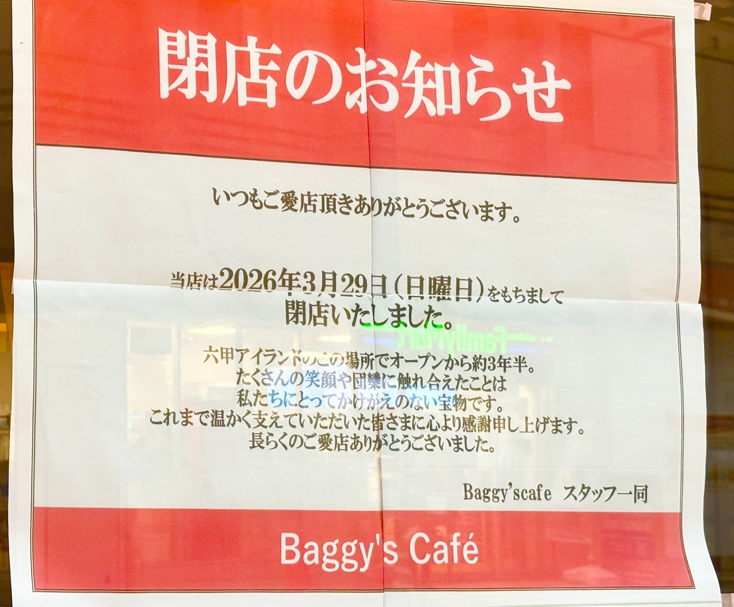 東灘・六甲アイランドにあった「Baggy’s Cafe(バギーズカフェ)」さんが3月29日(日)をもって閉店されました #閉店情報 #東灘区