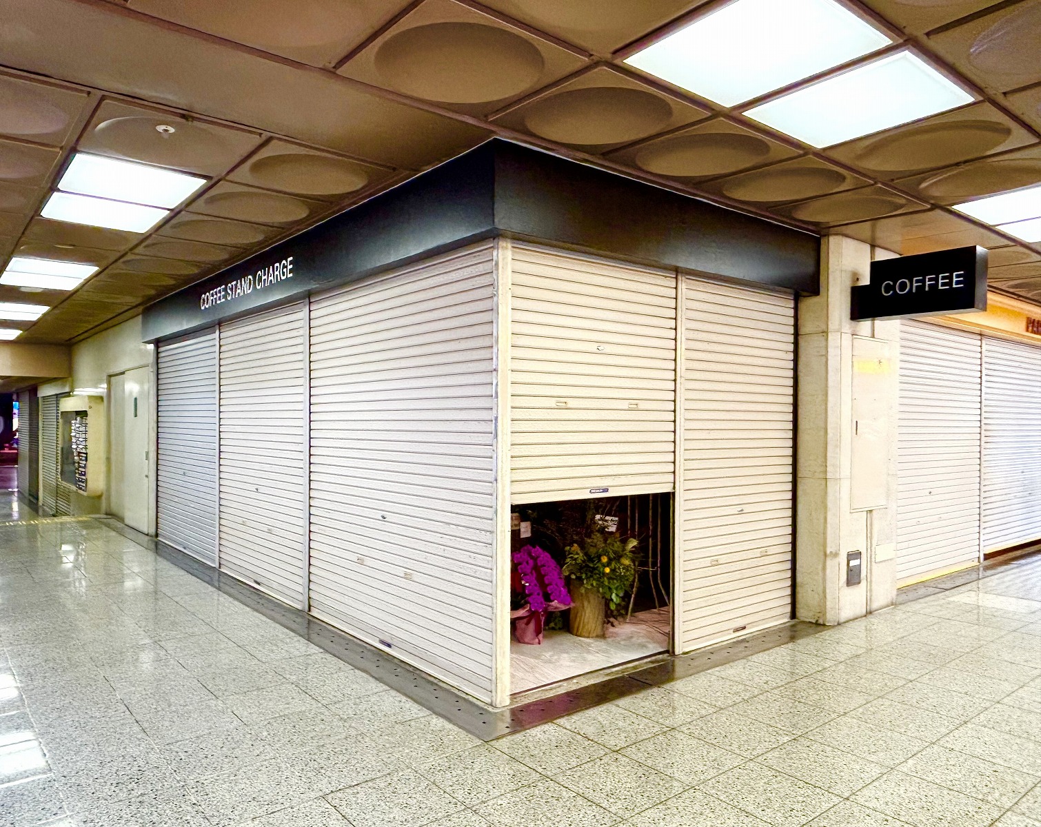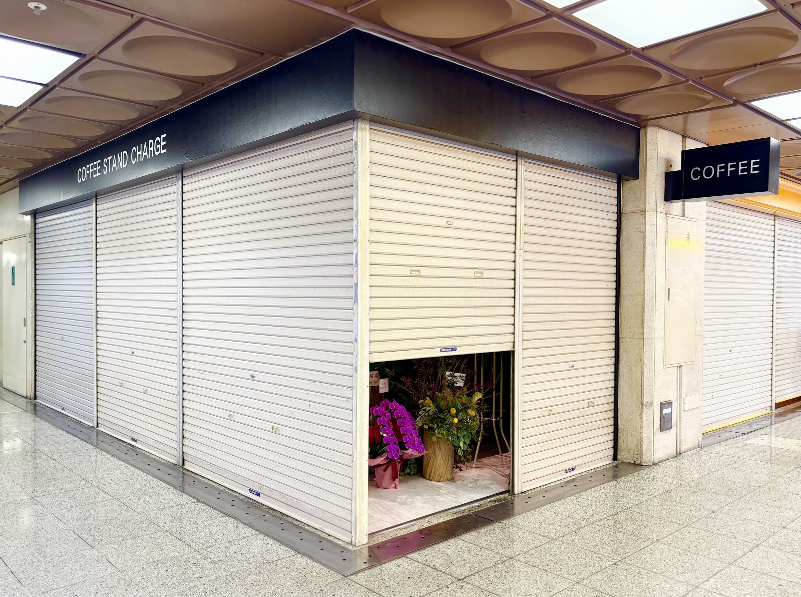 オープンを迎えられた「COFFEE STAND CHARGE」さん。(開店前の時間帯でしたので、シャッターが下りていますが、)カウンターとベンチのあるお店で、コーヒーやマフィンを販売されているそうなので、ぜひチェックしてみてくださいね。