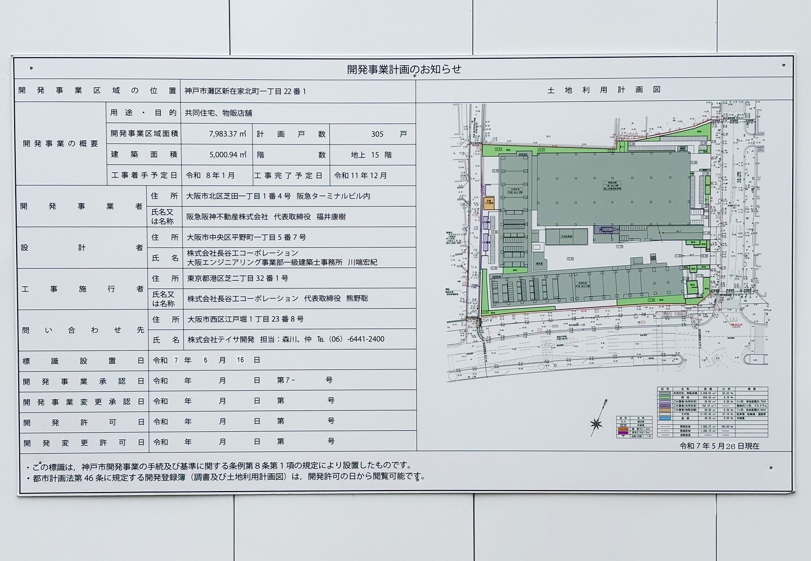 「開発事業計画のお知らせ」が掲示されており、一部を抜粋すると、