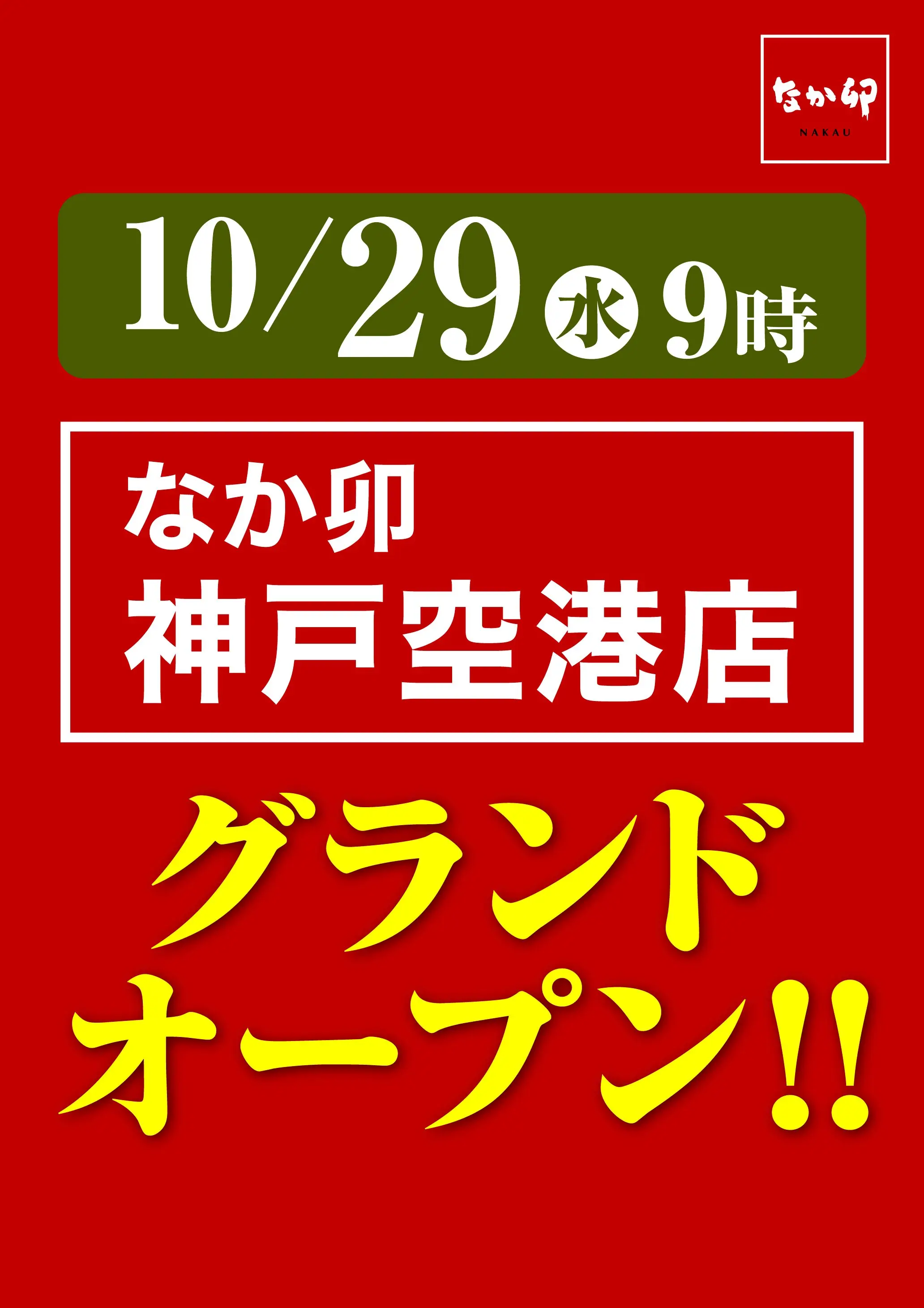 「なか卯 神戸空港店」さんが10月29日(水)にオープン!