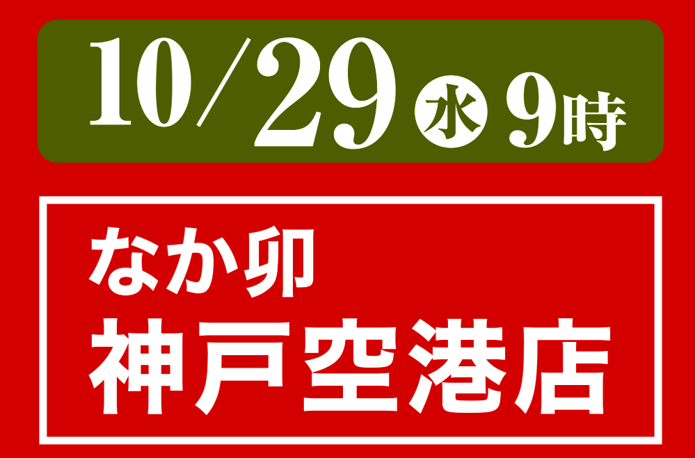 神戸空港 第1ターミナルビル3階に「なか卯 神戸空港店」さんが10月29日(水)朝9時にオープンされるよ! #新規オープン #新店情報 #開店情報 #なか卯