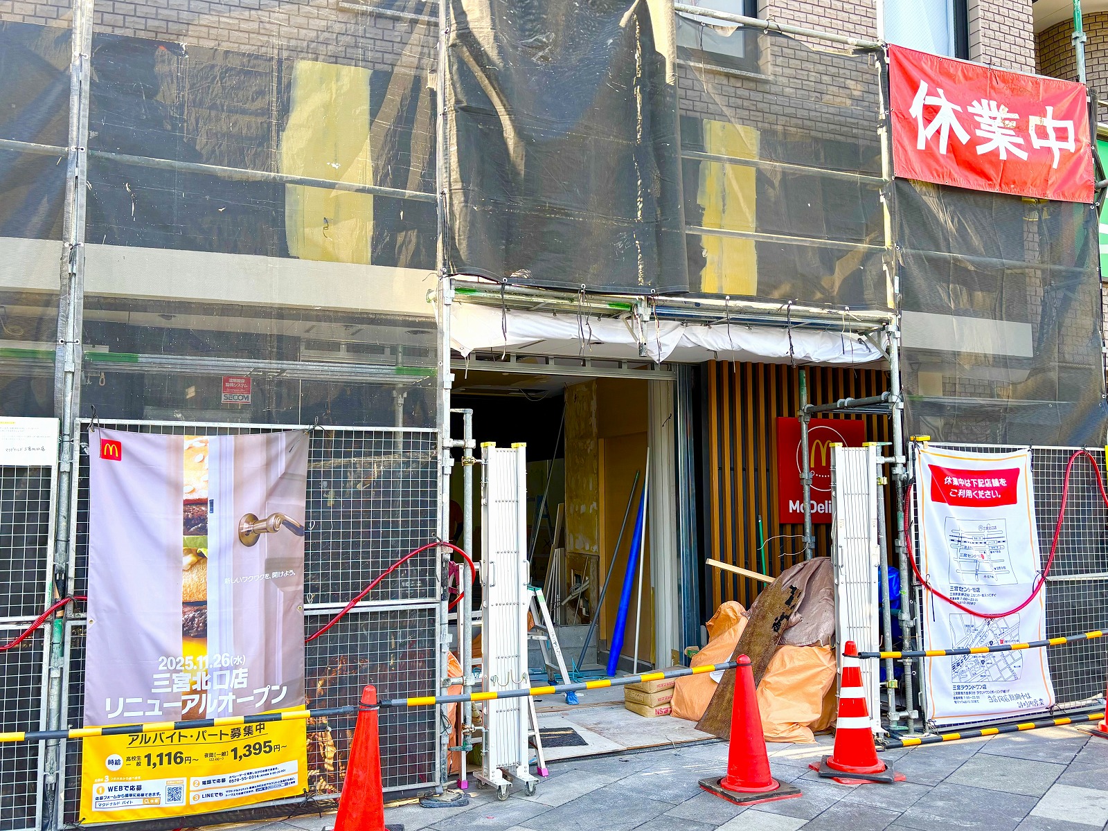 三宮にある「マクドナルド 三宮北口店」さんが休業中。11月26日(水)にリニューアルオープンされるみたいですよ、と読者様より情報とお写真をお寄せ頂きました。