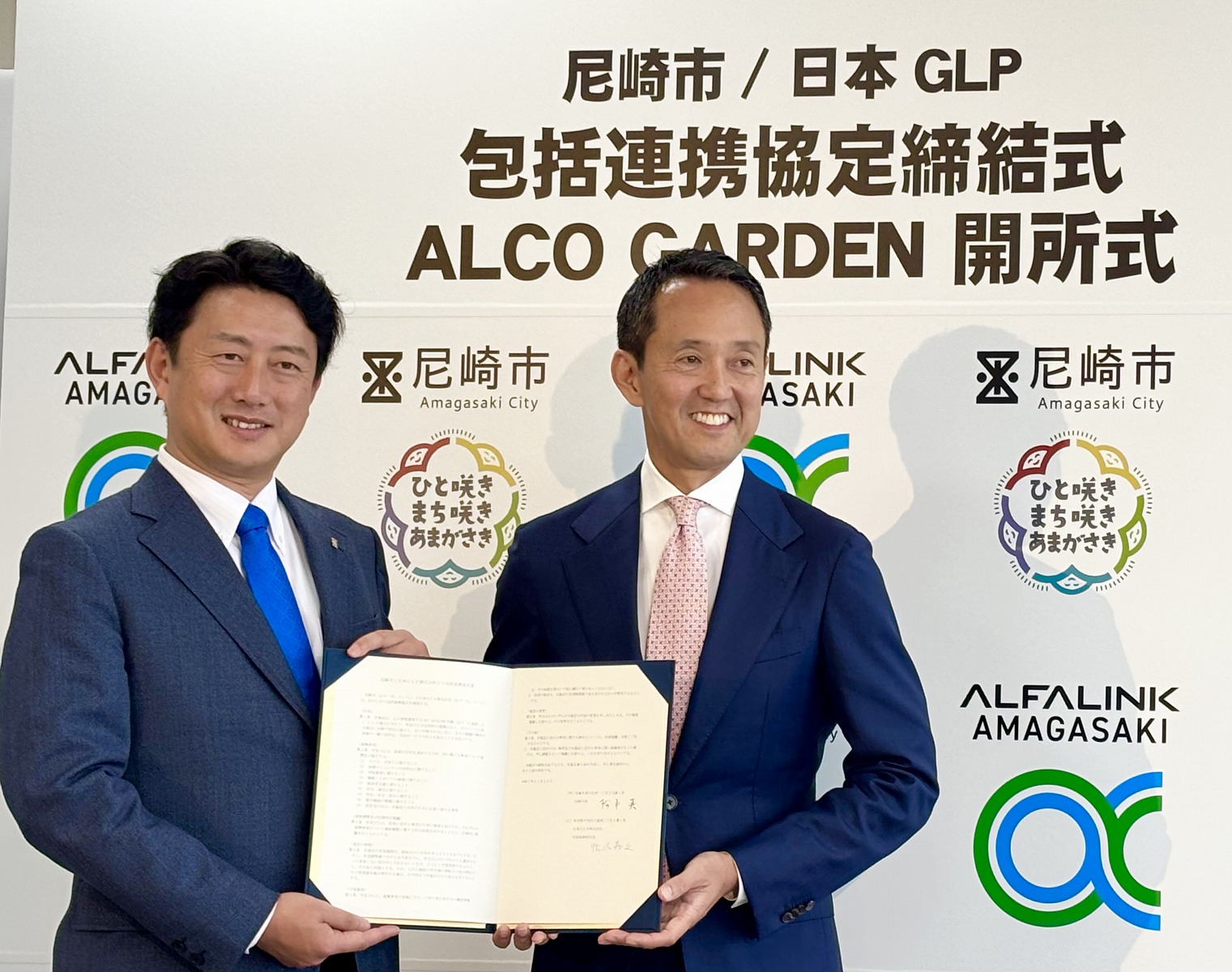 尼崎市と日本GLPは「GLP ALFALINK尼崎」における包括連携協定を11月13日に締結、あわせて開所式が実施されました。