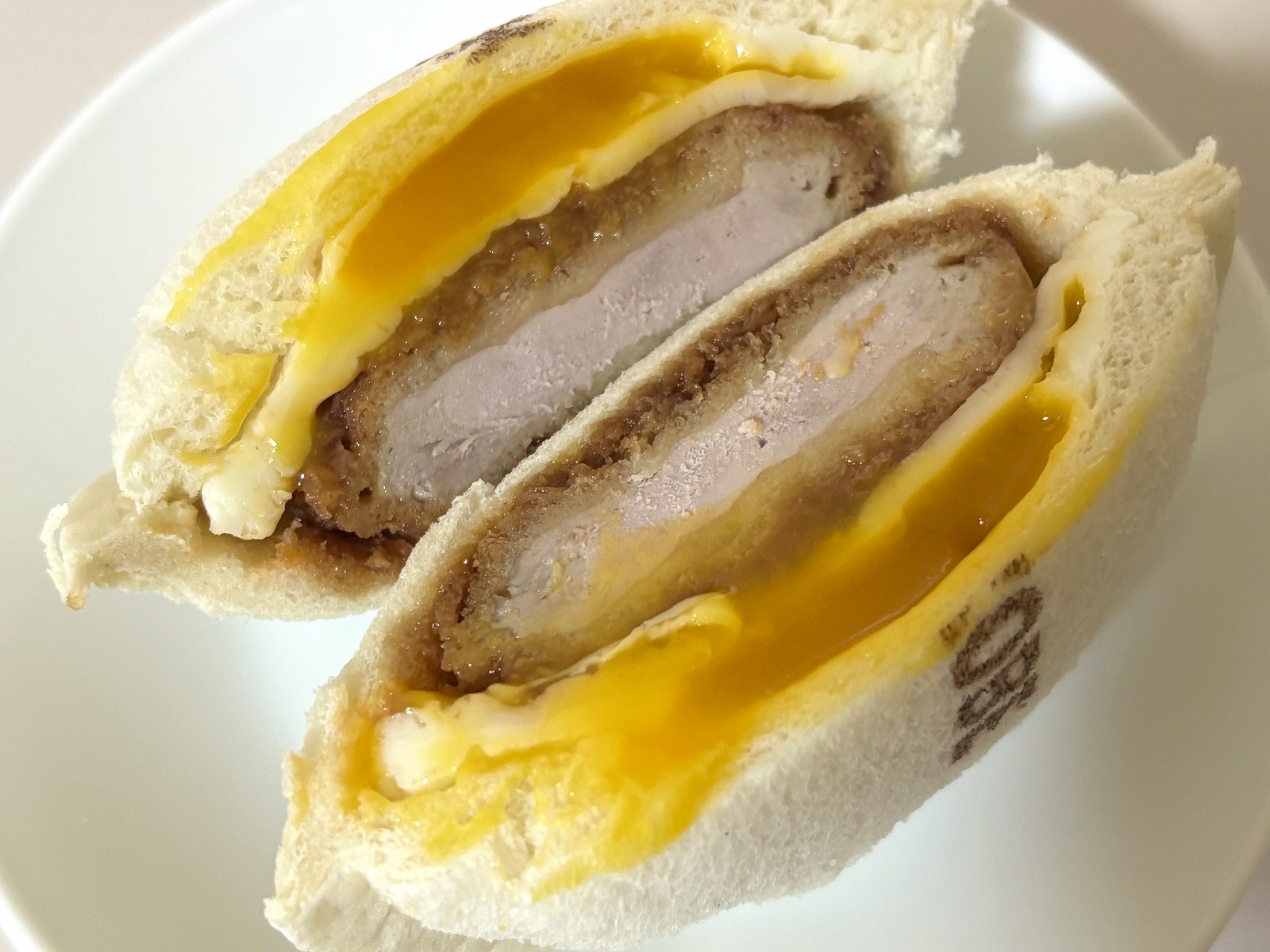 中には オリジナルの甘めのとんかつソースとやわらかなヒレかつ、そしてとろっとしたたまごがはさみこまれています。見た目もそうですが、たまごのとろっとした感がマッチして、抜群に美味しいです!