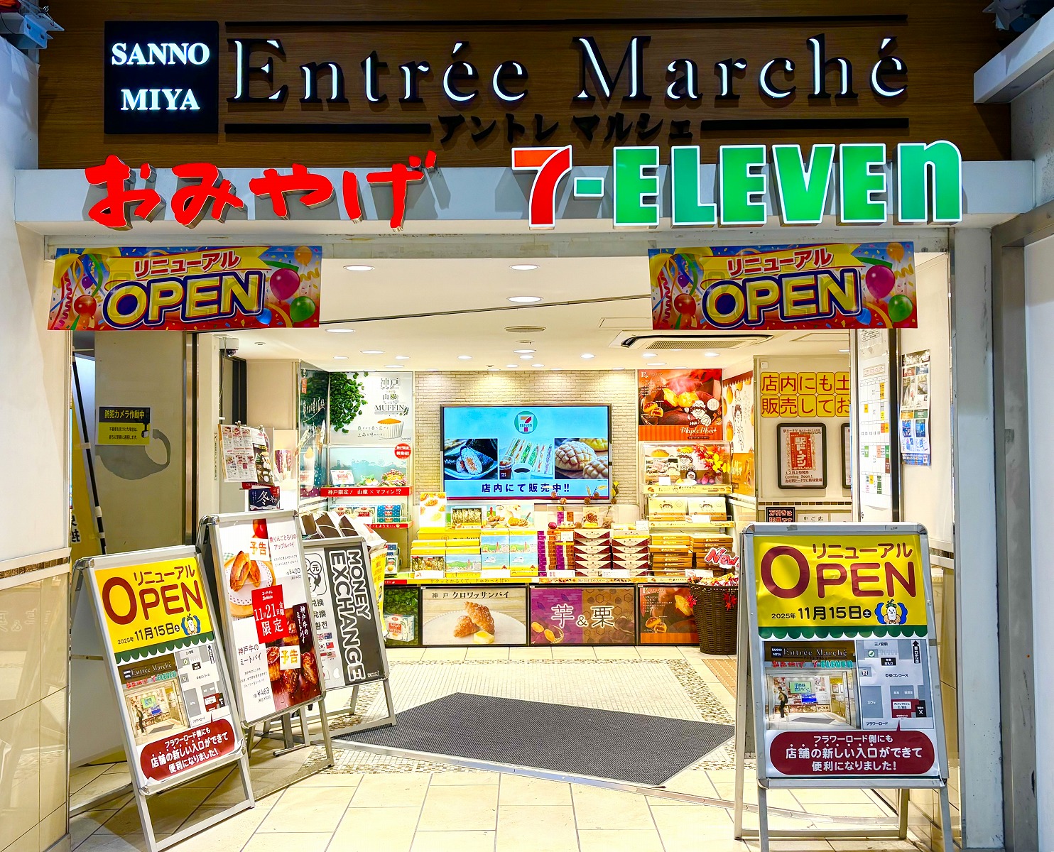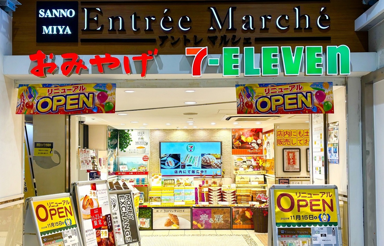11月15日(土)にリニューアルオープンを迎えられた「アントレマルシェ三ノ宮店」さん。おみやげ売場とセブンイレブンさんが合体された感じの、便利でちょっと楽しい店内となっています。