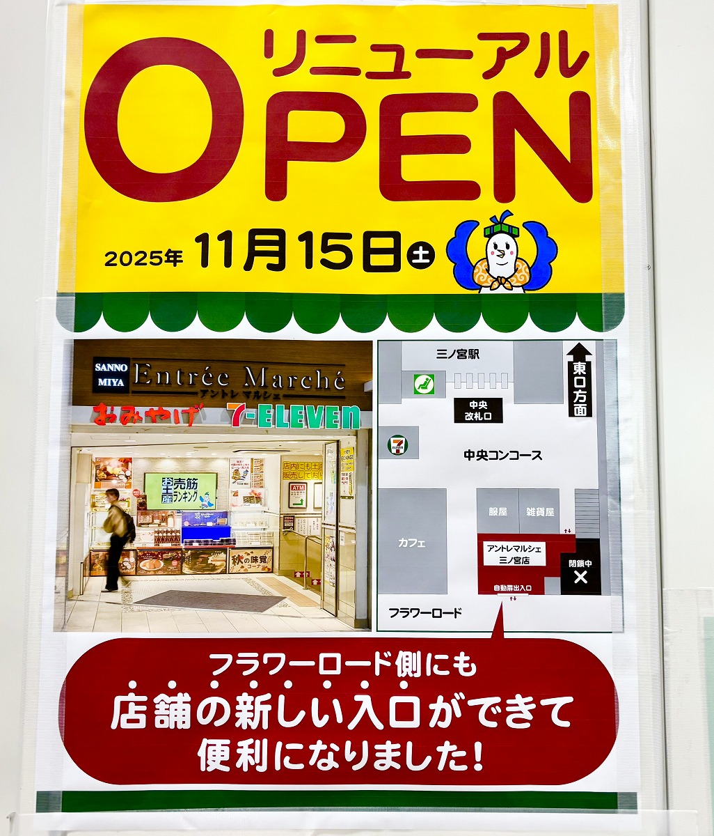 JR三ノ宮駅改札すぐの場所にある「アントレマルシェ三ノ宮店」さんが11月15日(土)にリニューアルオープン!フラワーロード側にも新しい入口ができて、より便利で立ち寄りやすいお店に♪ #アントレマルシェ #リニューアルオープン