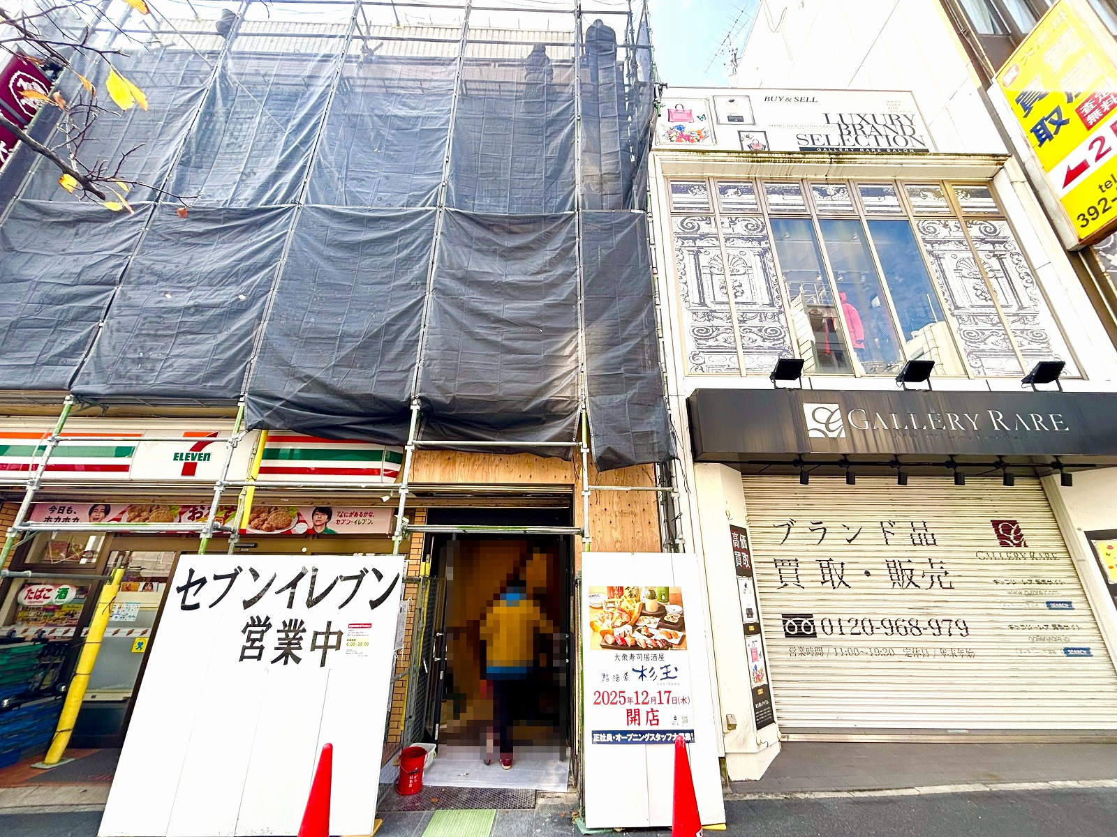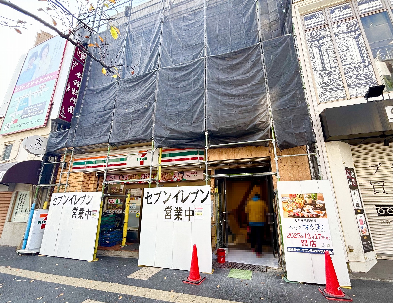「セブン-イレブン 神戸元町通1丁目店」さんが入る建物の2階にオープン予定の「鮨 酒 肴 杉玉 神戸元町店」さん。2025年11月現在、改装工事が進められていました。