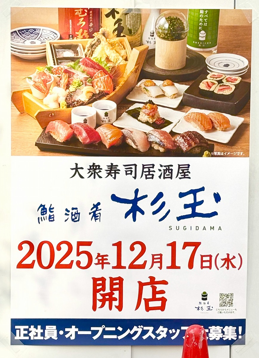 大衆寿司居酒屋「鮨 酒 肴 杉玉 神戸元町店」さんの2025年12月17日(水)オープン予定をどうぞお楽しみに♪