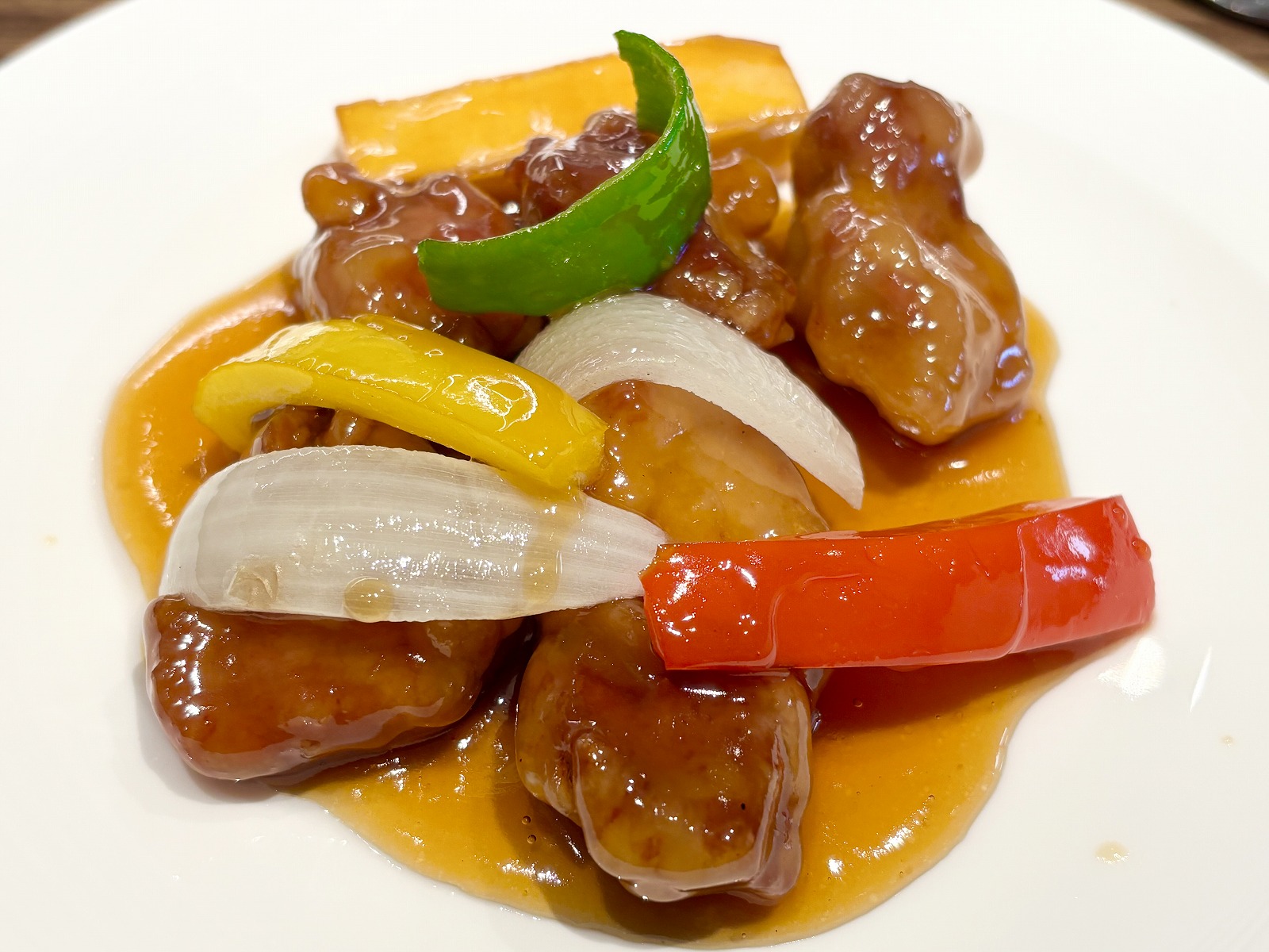 今回頂いたのが、健民式焼米粉(ビーフン)ランチセットで、シェフのおすすめ一品料理は、酢豚や油淋鶏などから選べるようになっています。今回は酢豚を選んでみました。その他にも、海鮮五目汁米粉(ビーフン)ランチや海鮮焼米粉(ビーフン)ランチなどがあり、ディナーではアラカルトやセット・コースもご用意されています。(※メニューの詳細は、健民ダイニングWEBサイトでご確認ください。)