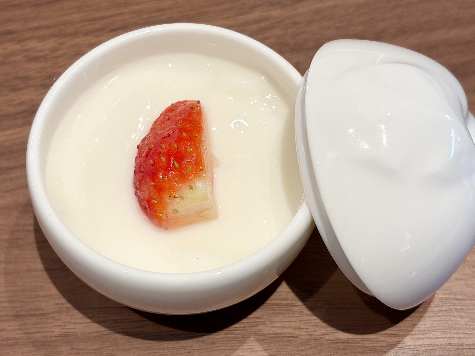 最後の小皿の蓋を開けると、スイーツの杏仁豆腐が登場。