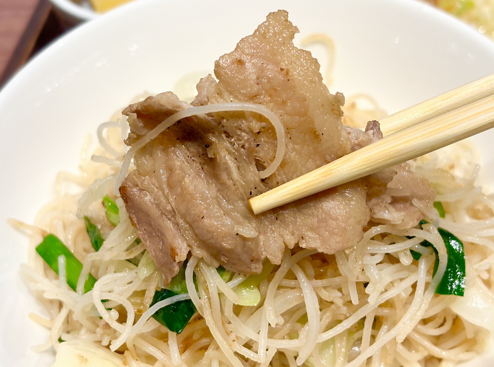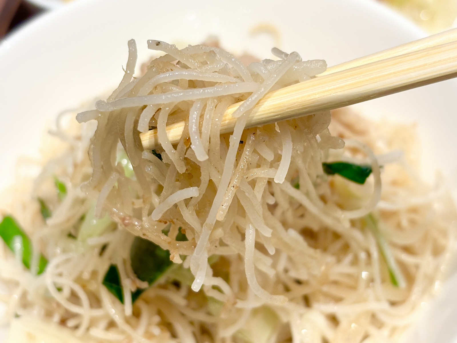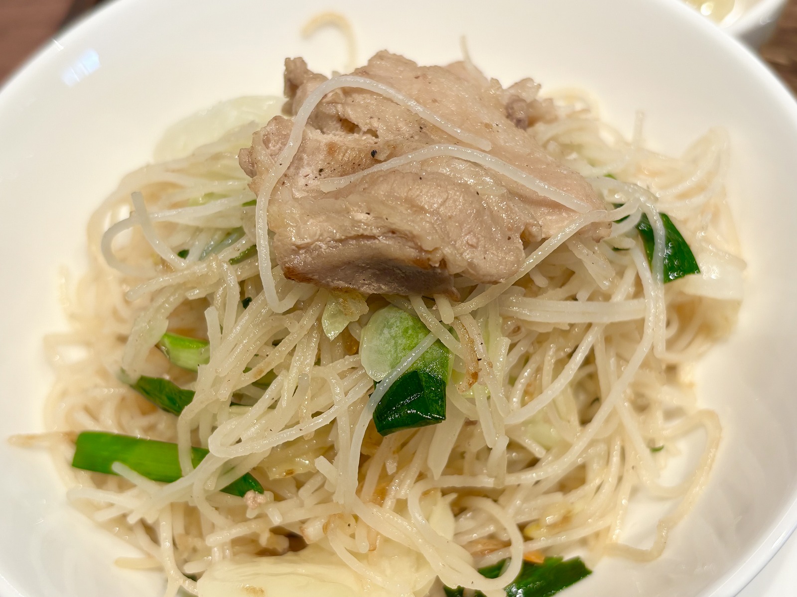 野菜や豚肉の旨味がビーフン全体にいきわたっており、それでいて軽い感じなので、いくらでも食べられますね。プロのお味とテクニックを楽しませて頂きました。