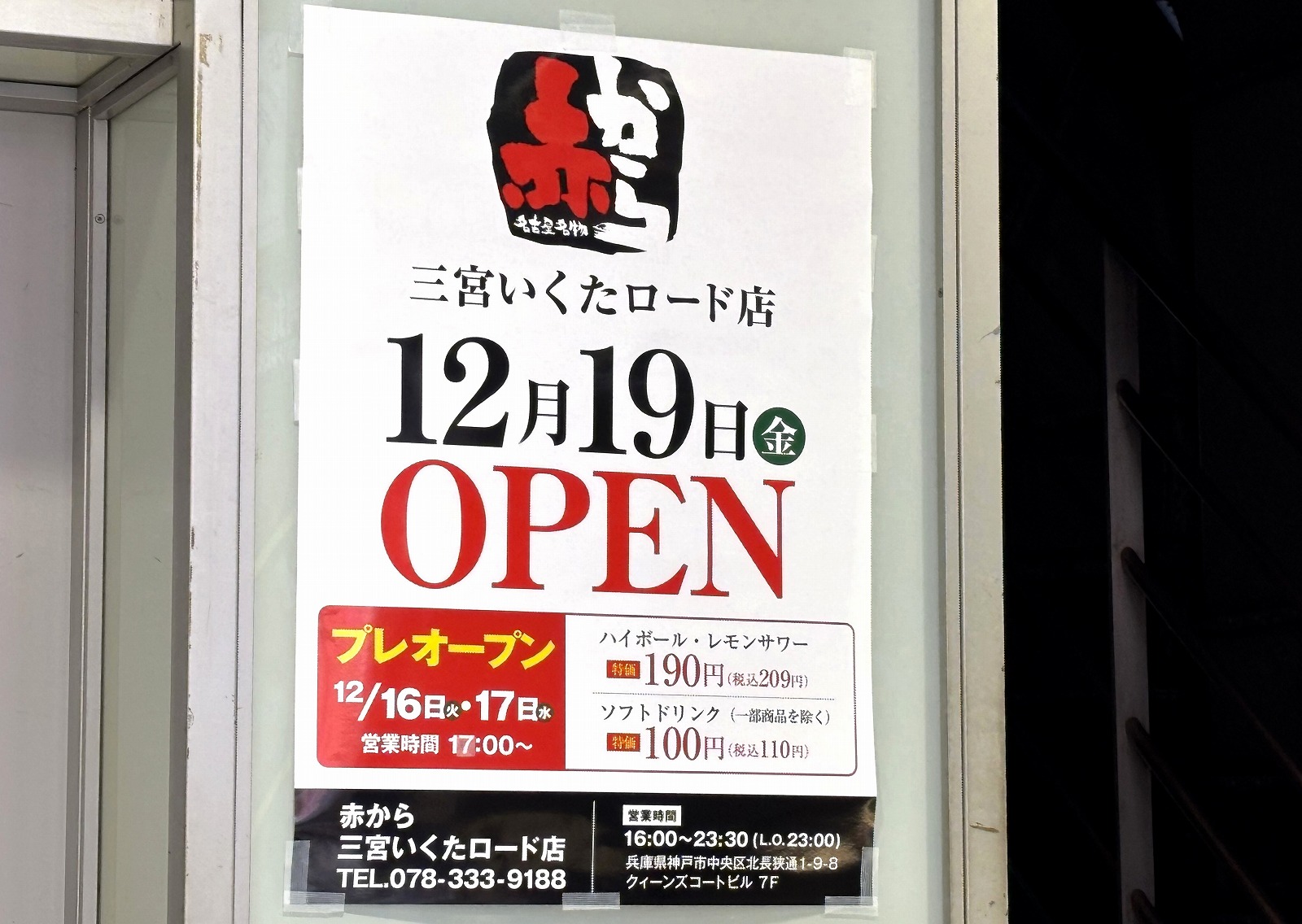 - 赤から 三宮いくたロード店【※2025年12月19日(金)オープン予定】