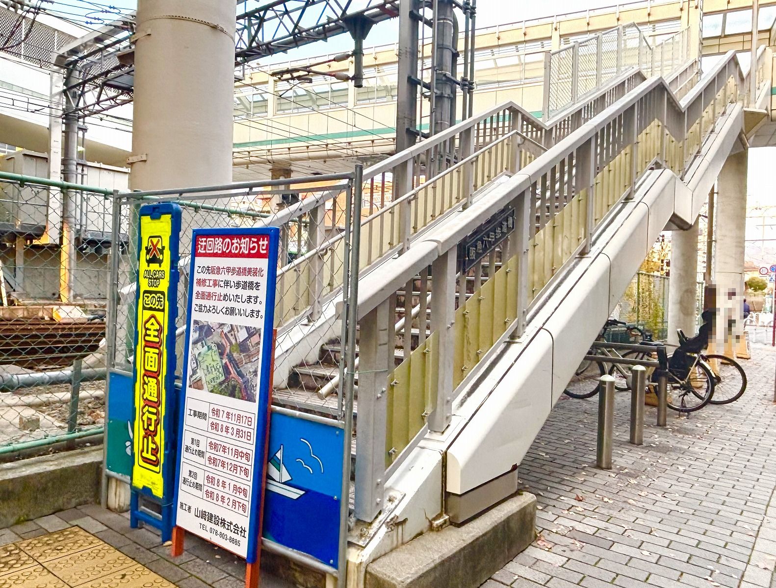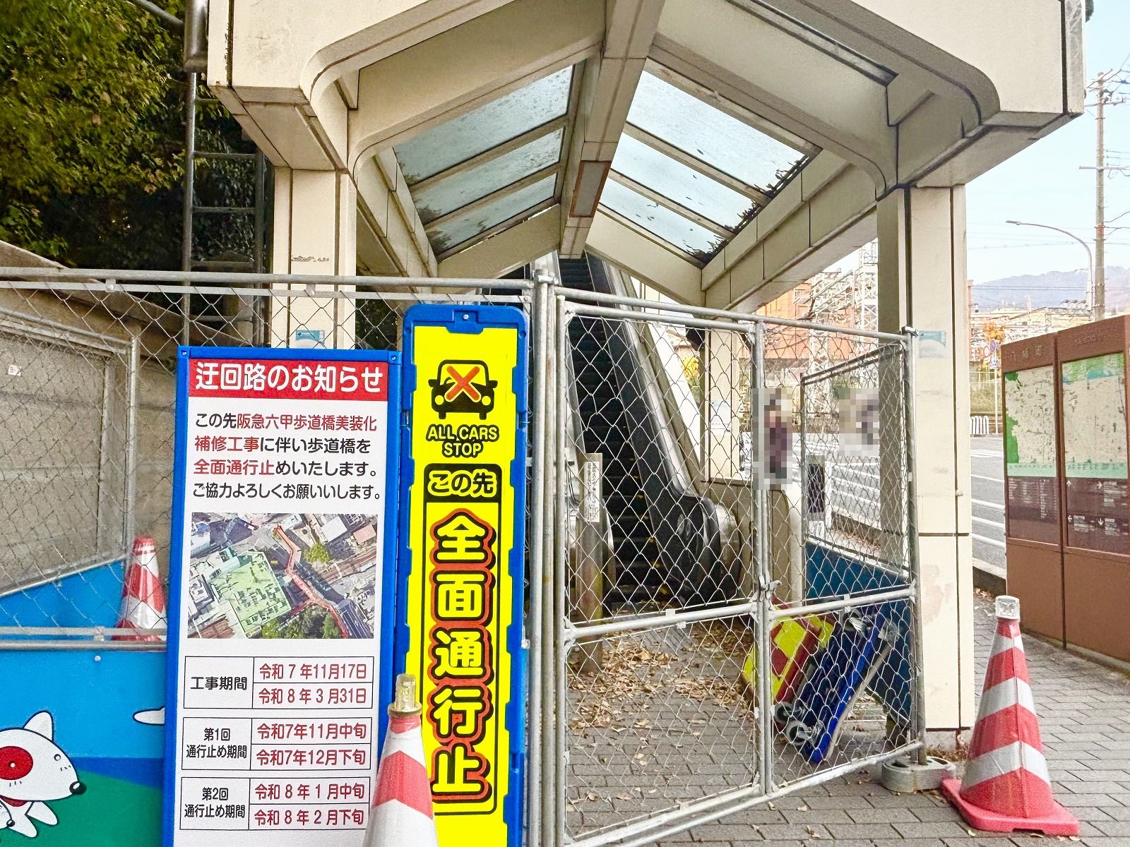 阪急六甲歩道橋美装化補修工事に伴い、通行止めや迂回が発生