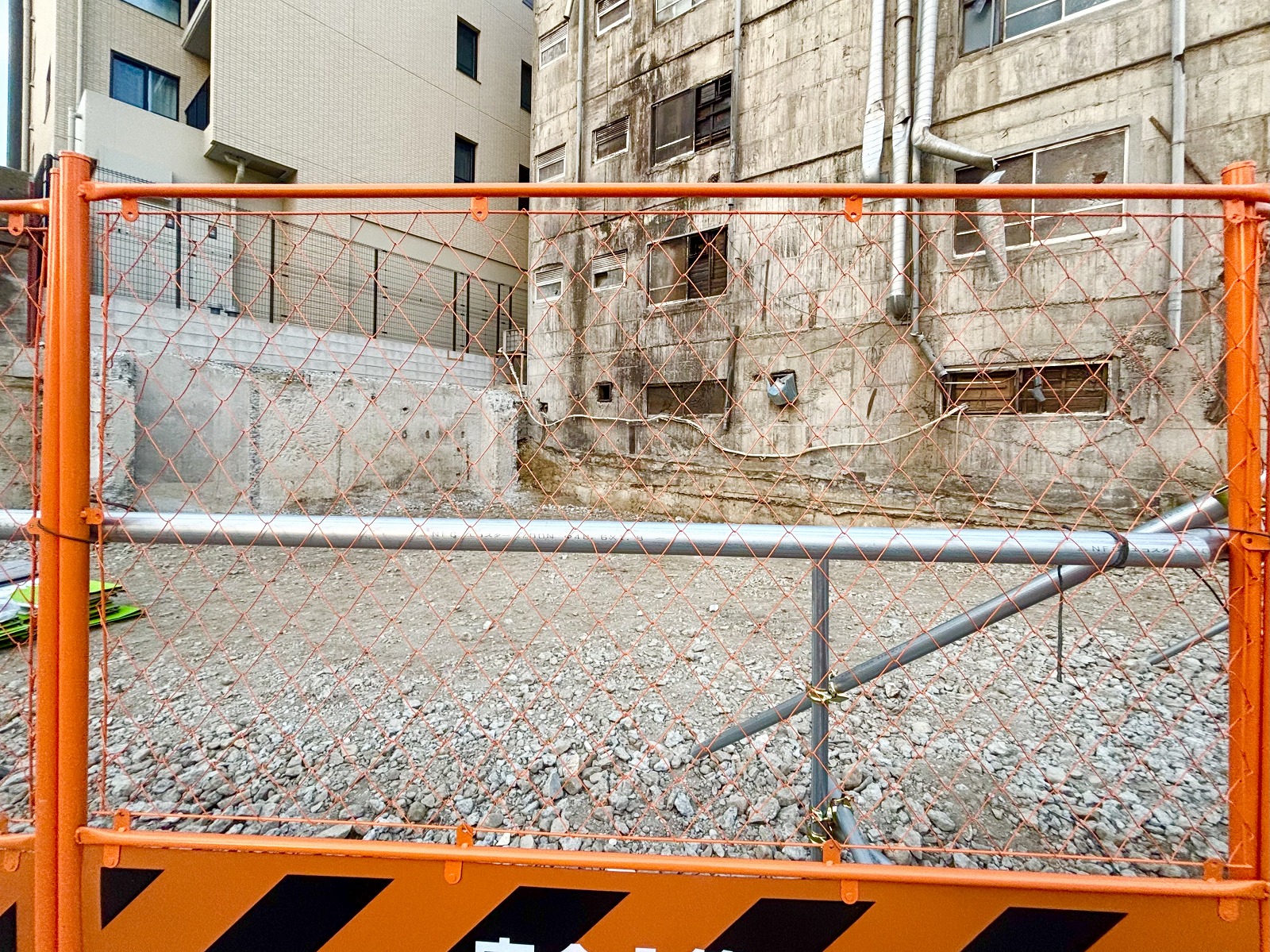 建物は全て解体・撤去され、お隣のビルの側面が見えていました。