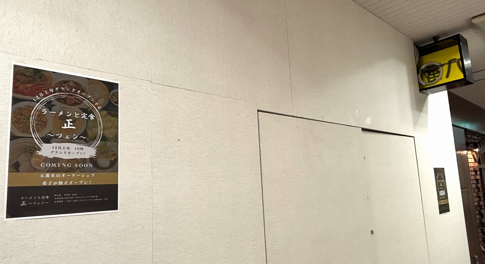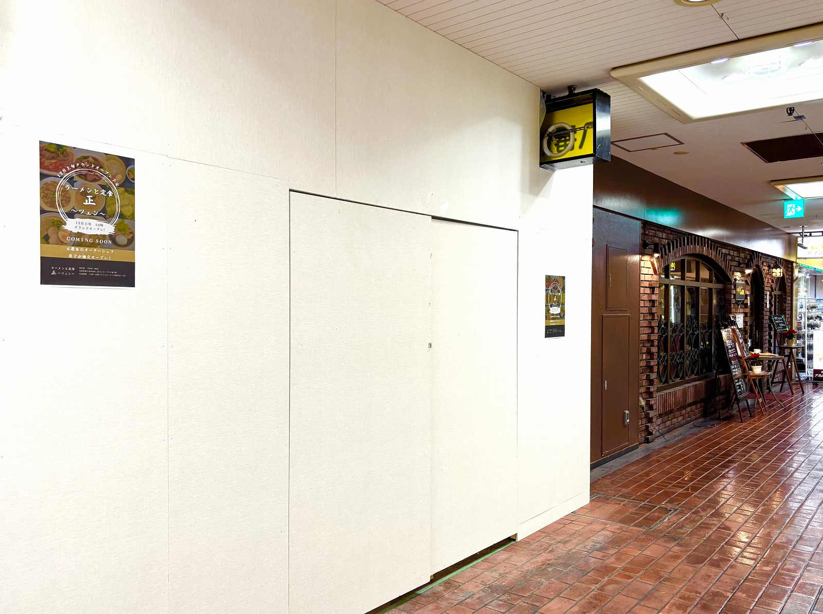 センタープラザのB1Fにオープンを予定されている「正(ツェン)」さん。(かつて「らーめん八番館」さんがあったあたりですね)