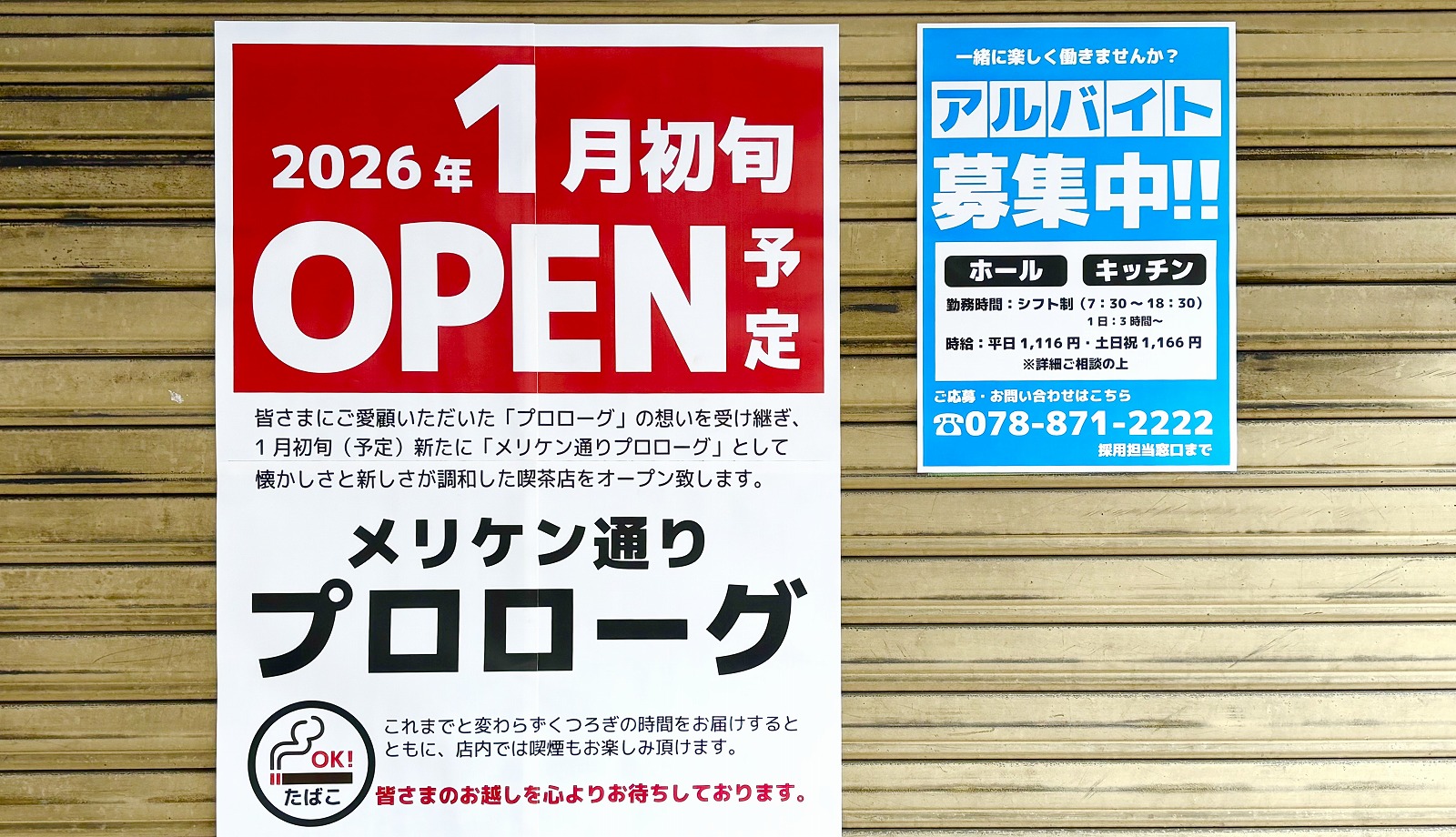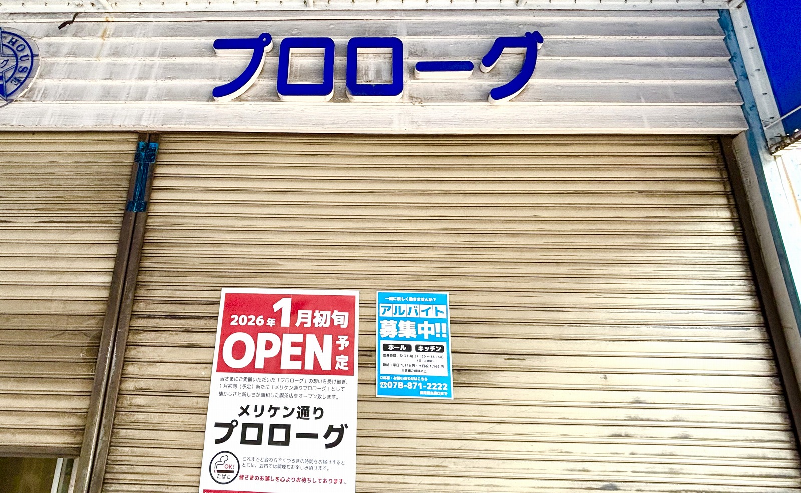 「プロローグ」さんが「メリケン通りプロローグ」として2026年1月初旬にオープン予定