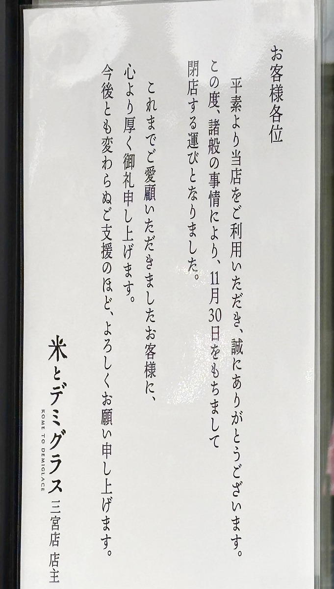 神戸三宮・サンキタ通りにあった「米とデミグラス 三宮店」さんが11月30日をもって閉店されました #閉店情報