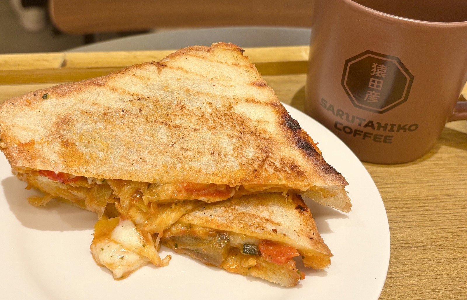 お野菜とモッツァレラチーズがたっぷり入っており、お腹も大満足のホットサンドですよ♪