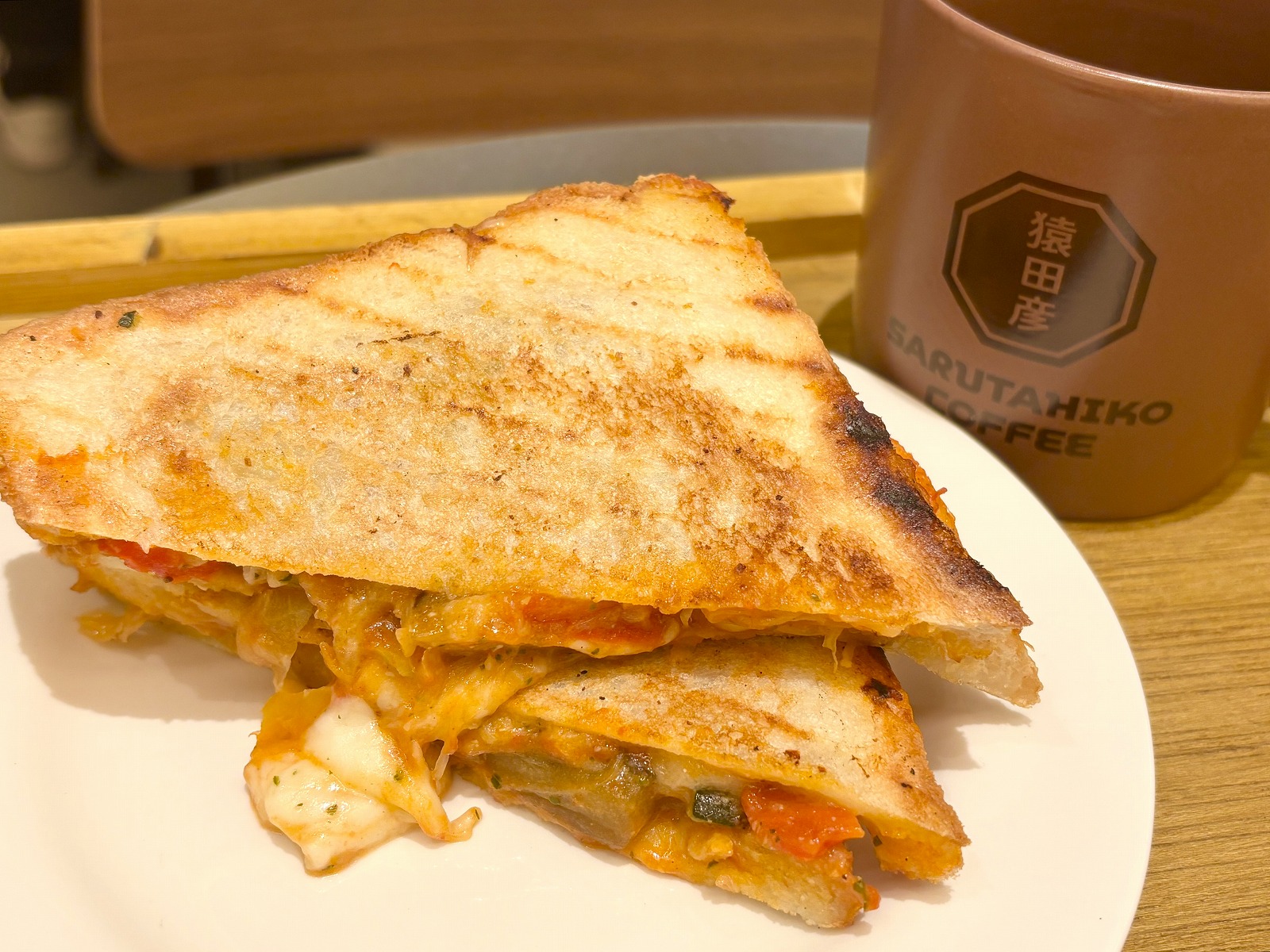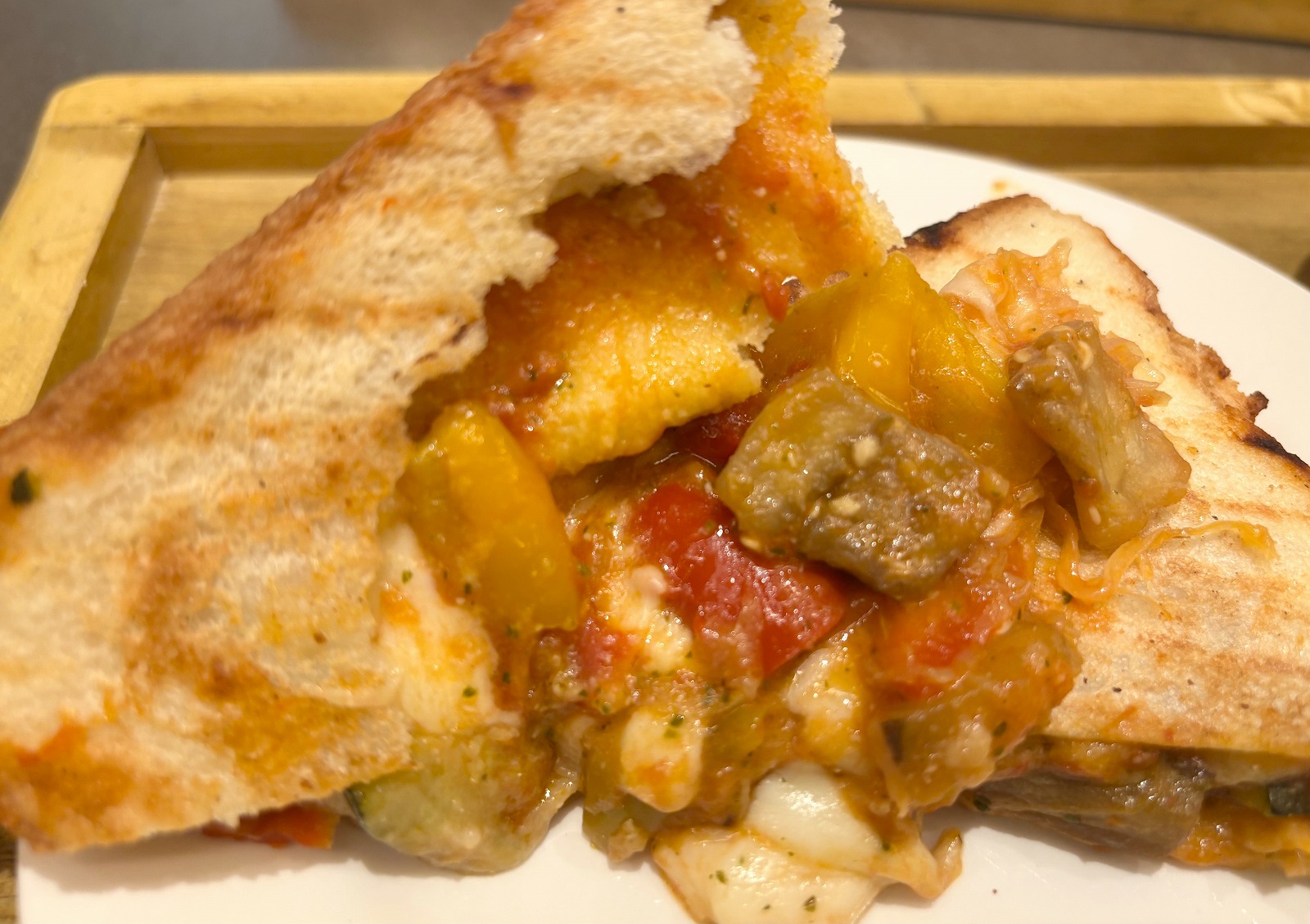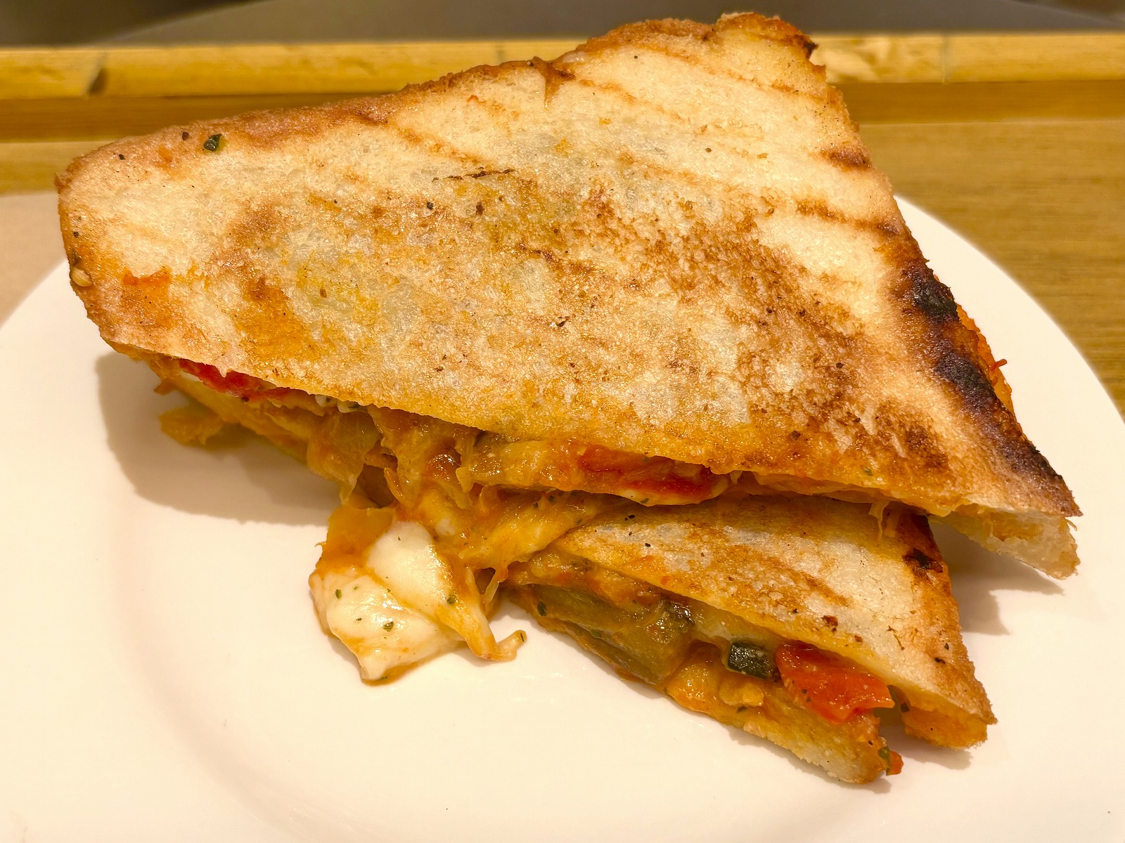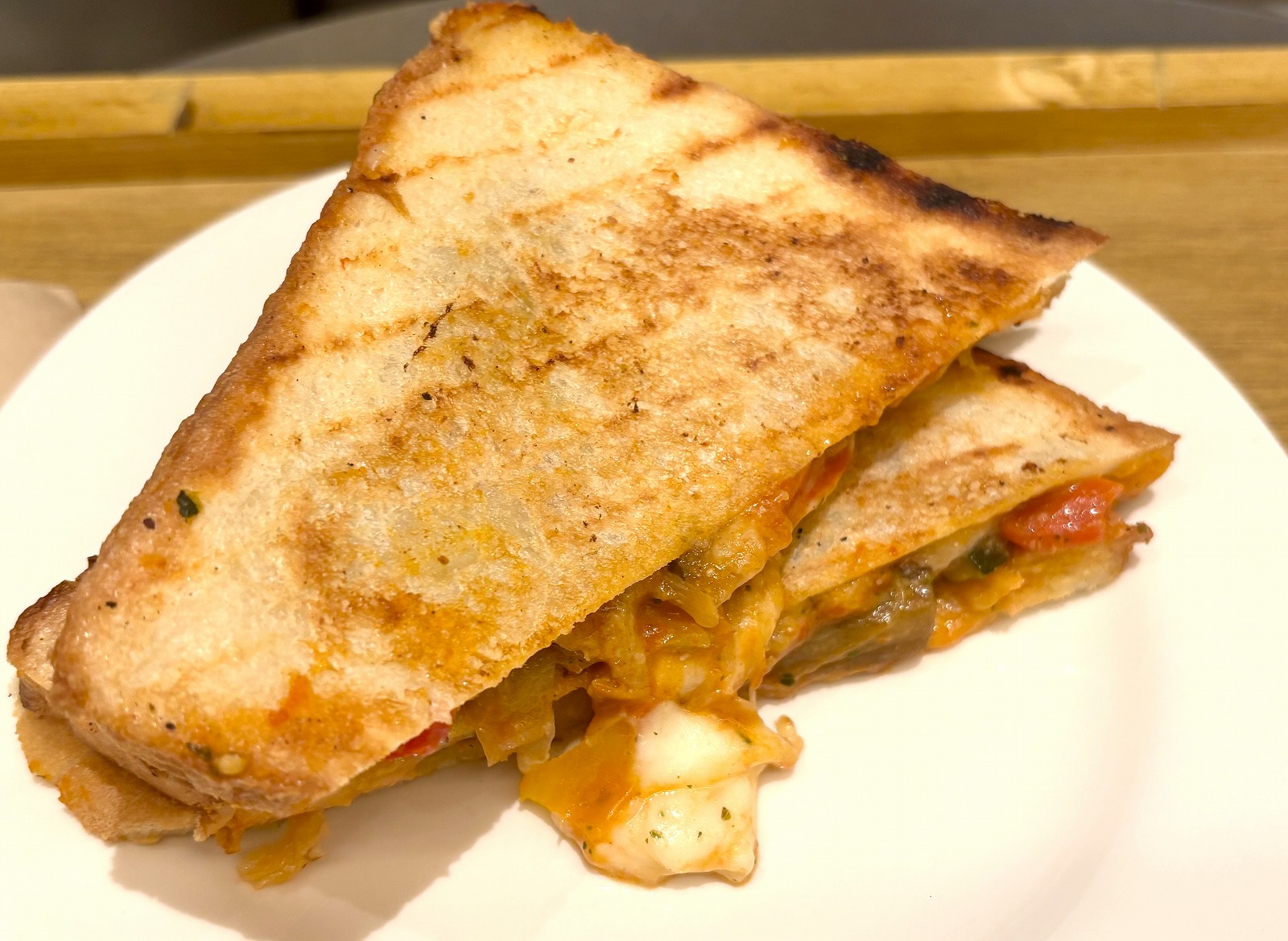 お野菜とモッツァレラチーズがたっぷり入っており、お腹も大満足のホットサンドですよ♪