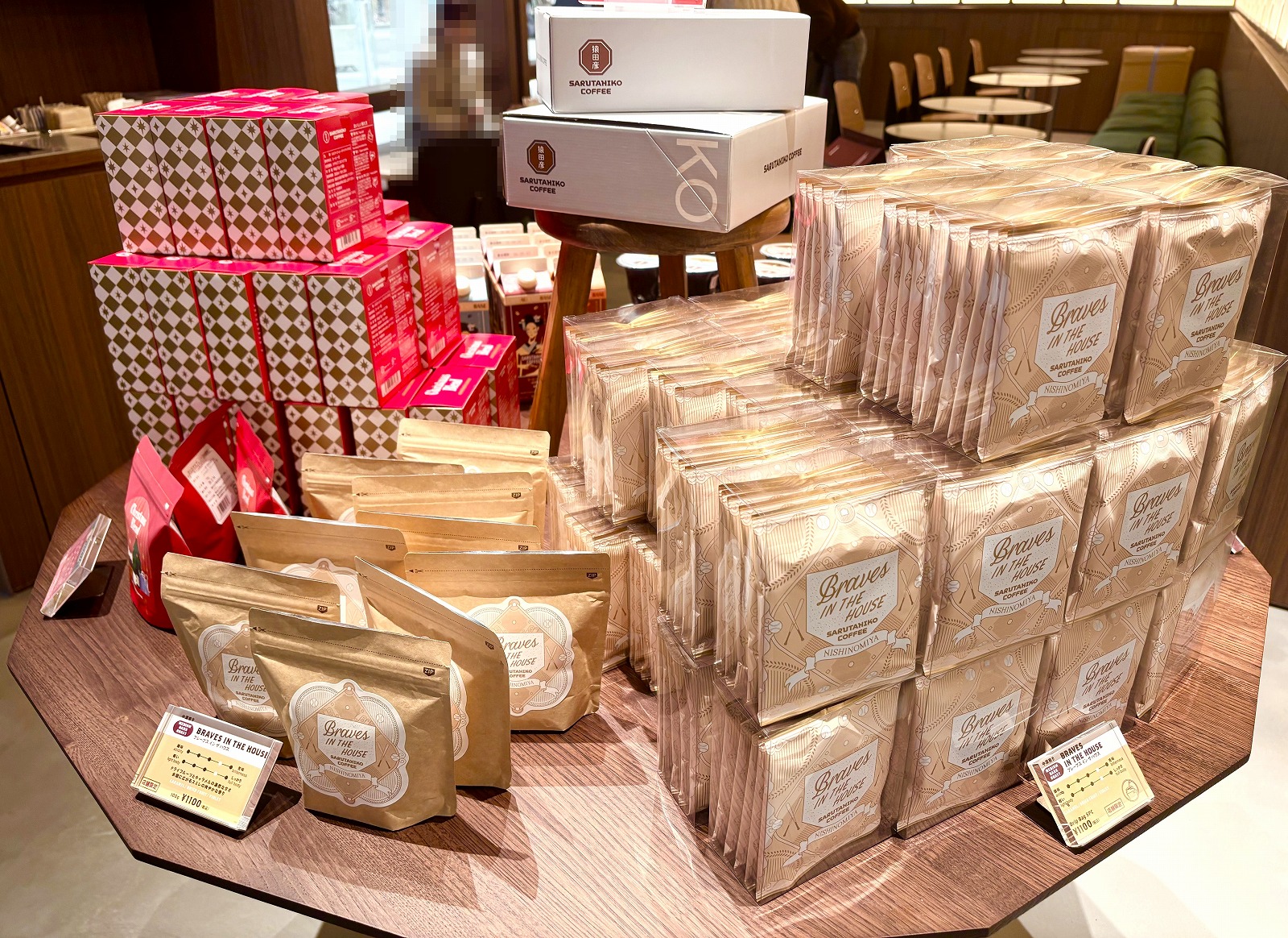 西宮ガーデンズ店限定ブレンド「ブレーブスインザハウス」の豆とドリップバッグのセットも販売されています。