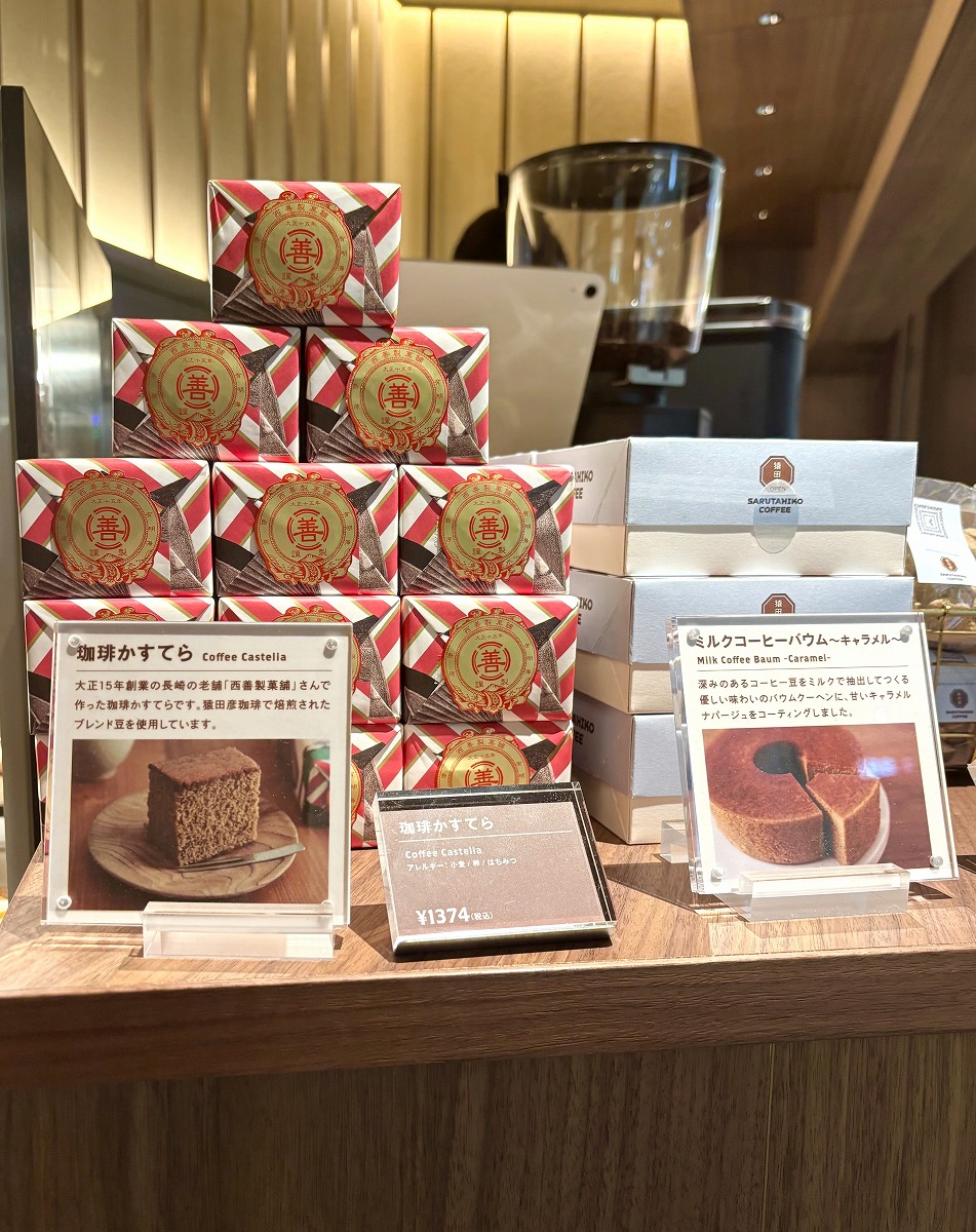 カウンター横には、ちょっと珍しい「珈琲かすてら」や「ミルクコーヒーバウム」もあり、