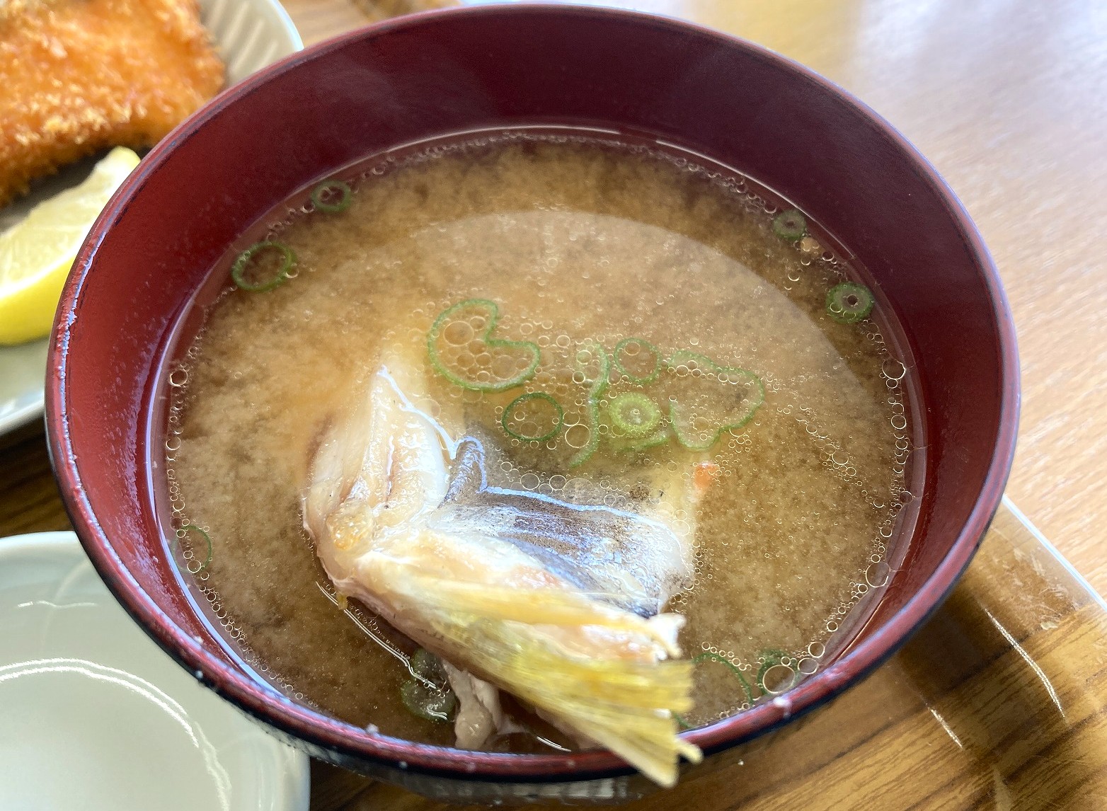 あら汁にも大きな魚の身が入っており、旨味が染み出ていました。
