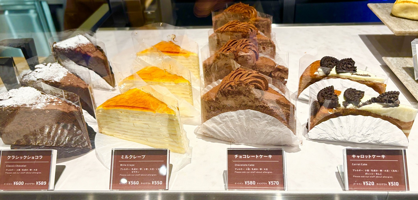 注文カウンターの横にはケーキやショコラが並んでおり、